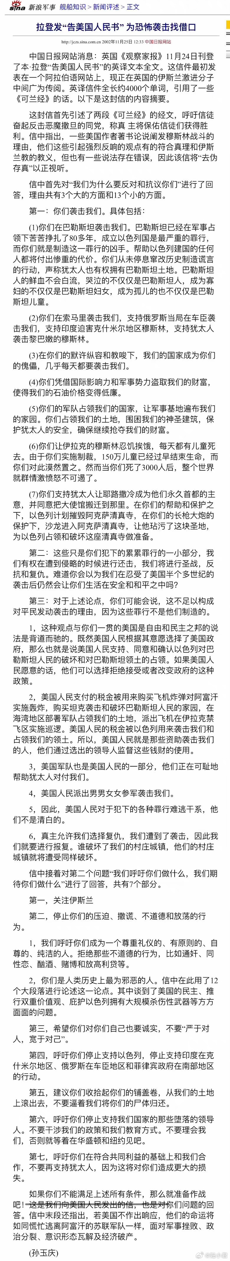 本拉登 《告美国人民书》摘要(图9)