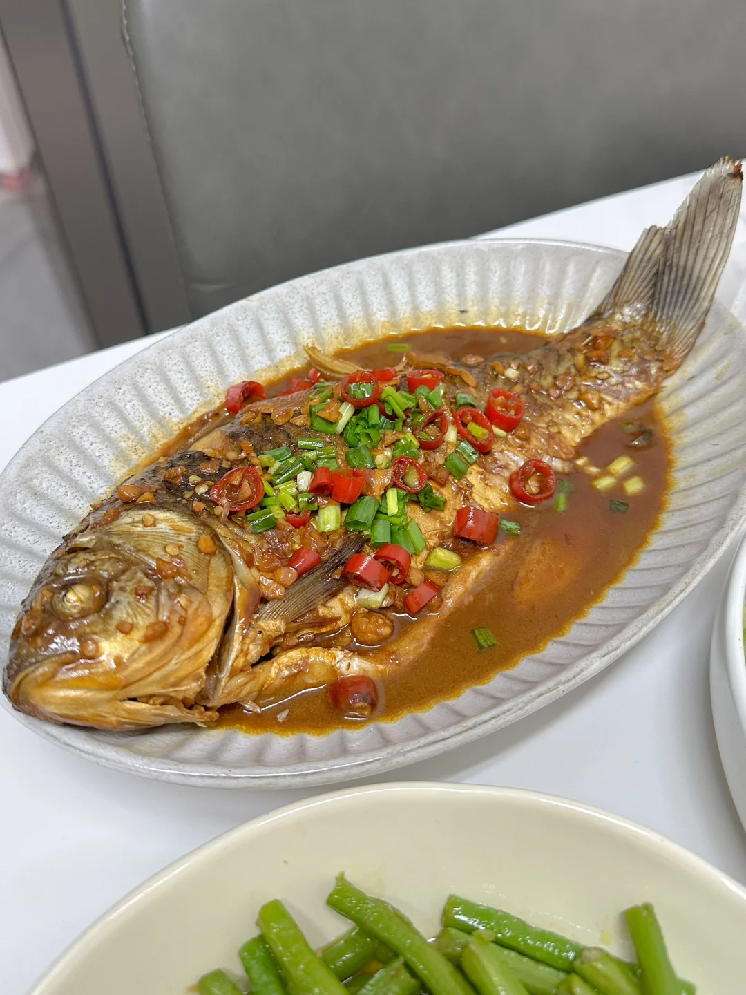 红烧鱼 火腿肠土豆丝 蒜末豇豆🌈