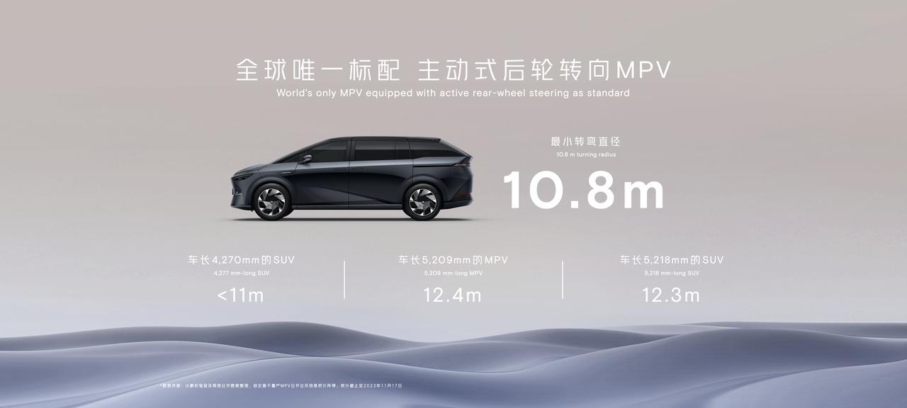 在不老男神林志颖的助力下,小鹏X9在本届广州车展上迎来预售,预售价格38.8万元起,预售期间下订还可享受2,000元意向金抵扣5,000元车款、首任非营运车主整车终身质保等权益。 小鹏X9是扶摇架构下的旗舰车型,小鹏表示:从产品设计到产品性能,X9都打破过往市场对于MPV车型的传统偏见,打出了“下一代超智驾大七座”的称号。 在外形设计上,X9和人们习以为常的方盒子造型抑或埃尔法脸都不相同。取而代之的是家族化的星舰设计语言,通过锋芒外露的边锋折线呈现出凌厉而富有未来气息的形态。 小鹏X9车长5293mm,轴距3160mm。场于腾势D9,别克世纪,极氪009等一众同级竞品。不过,虽然小鹏X9体型硕大,但得益于全系标配的后轮转向系统,依然能够带来相对灵动的驾控表现。 更为难能可贵的是,小鹏X9还是国内唯一标配双腔空气悬挂的车型。可实现更为舒适的震动过滤,在毫秒内做出响应,自动匹配适当的阻尼并调整。 同时,车内第二排还标配带中央通道的舒适沙发,拥有同级领先的180mm中央通道,轻松实现车内二三排走动。而第二排座椅电动滑轨也达到1100mm,可以根据需求调整二三排的空间,也方便照顾小孩或老人。【来自懂车帝车友圈】