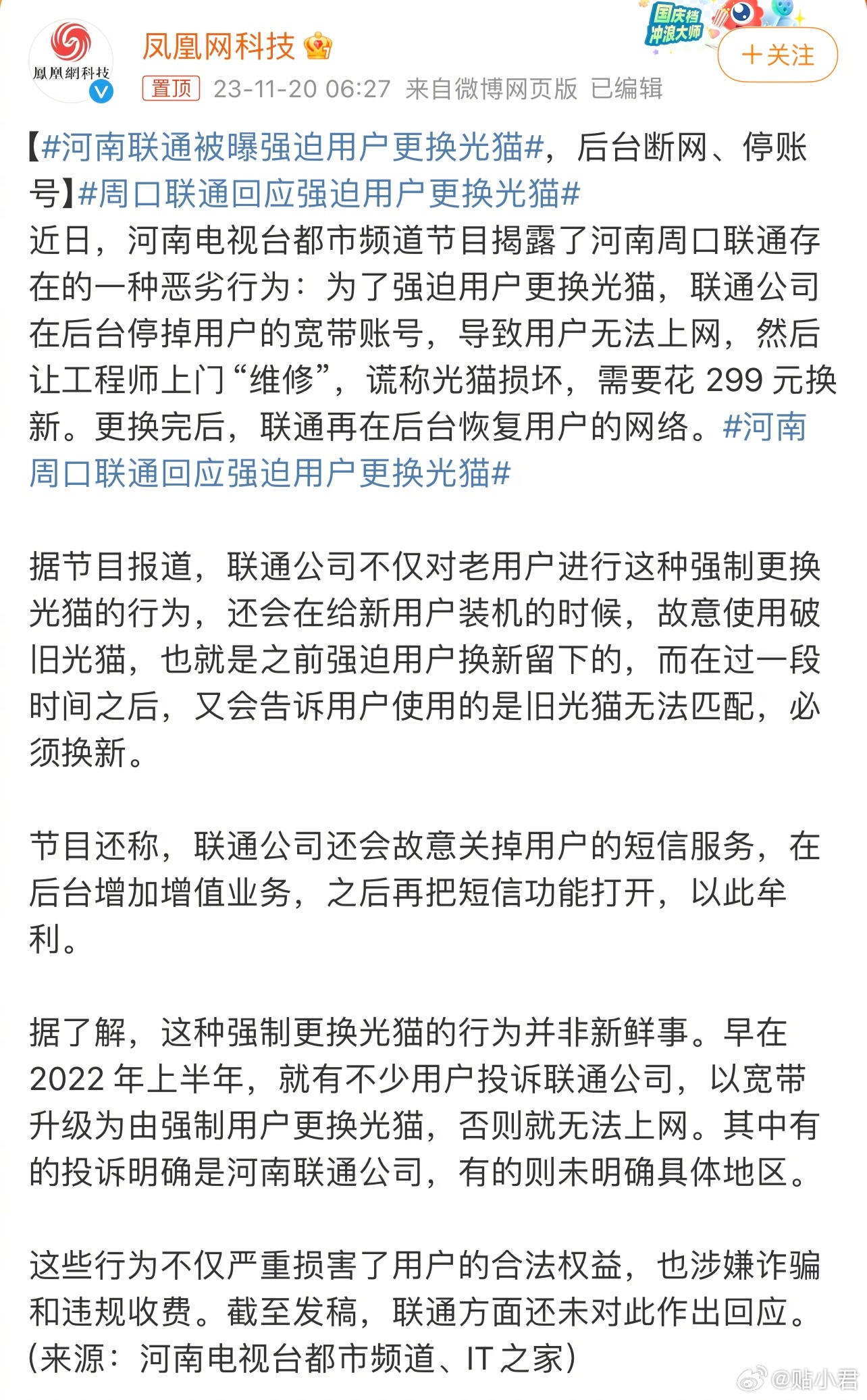 #周口联通回应强迫用户更换光猫##河南联通被曝强迫用户更换光猫##周口联通#