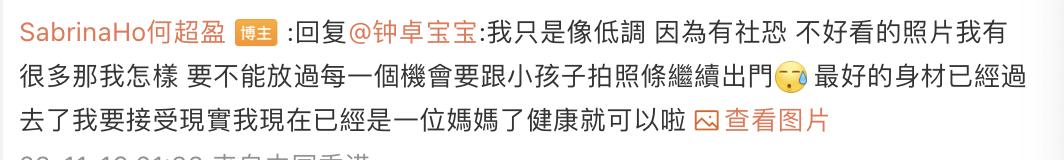 何超盈晒无修图照公开近况,自曝身材已复胖,称最好的身材已过去 何超盈因担任伴娘照片被曝光而备受关注,但她表示这些照片是被“出卖”的,自己曾签了保密协议,但仍有很多人未经她同意就公开了照片。尽管她的状态很好,但她不想公开亮相,因为她有“社恐”,害怕面对镜头。何超盈表示自己接受现实,身材已经复胖,但她仍然很幸福,因为她有家人的陪伴和孩子的爱。