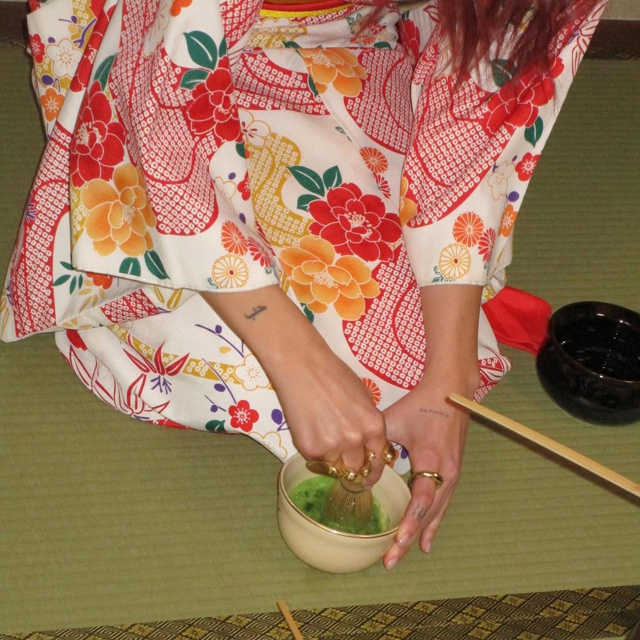 Dua Lipa 去日本了,穿和服感受茶道! Tokyo trip with the sweetest invitation to a traditional tea ceremony 🍵🍥🌸🫘 想喝她做的抹茶。