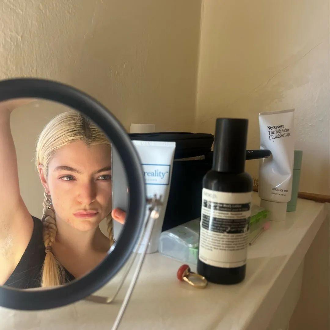 Lorde 发了一张自己在梳妆台的自拍,其中有一些小众护肤品,这可能就是她回春的