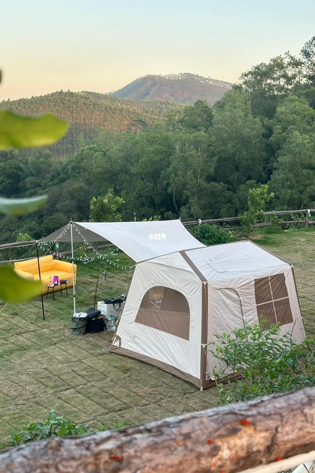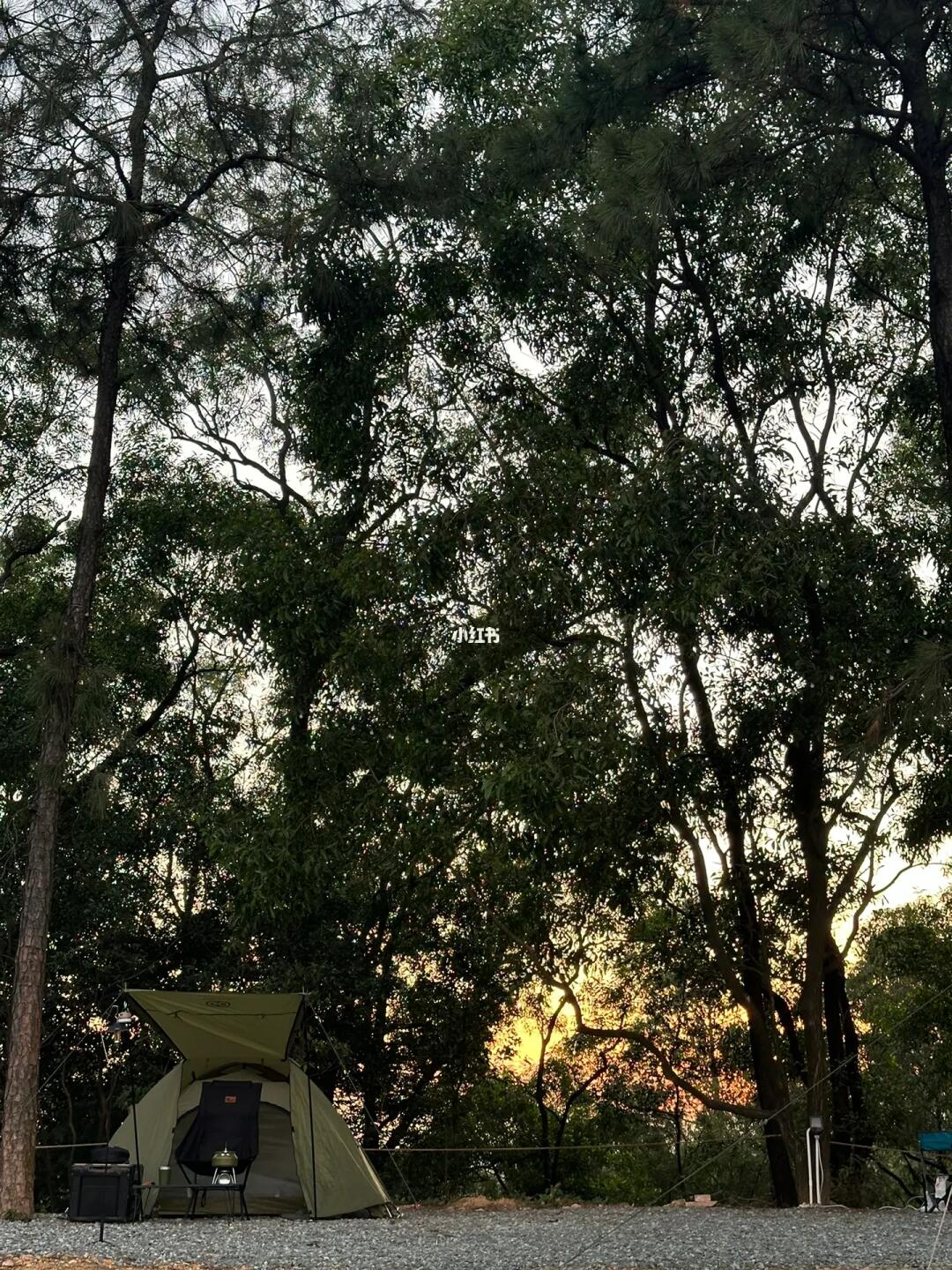 今年露营心态上很大变化就是不再一味追求新营地⛺️找到舒服空旷有山水有水有树林的营地就可以无数次回刷!11月连续去了2次今年新开的营地⛺️晓山青,都让人感觉到安心和舒服!从广州出发1h就到达,👍营地1km有本地人吃了几十年的早餐店,早餐喝碗粥或者云吞就很舒服!附近3km有市场可补给,周边山头可徒步!第一次搭建在石子地树林第二次搭建在草地看湖区,2处风景我都很喜欢,估计这个冬天都会驻扎在这了!快来一起偶遇哇💁