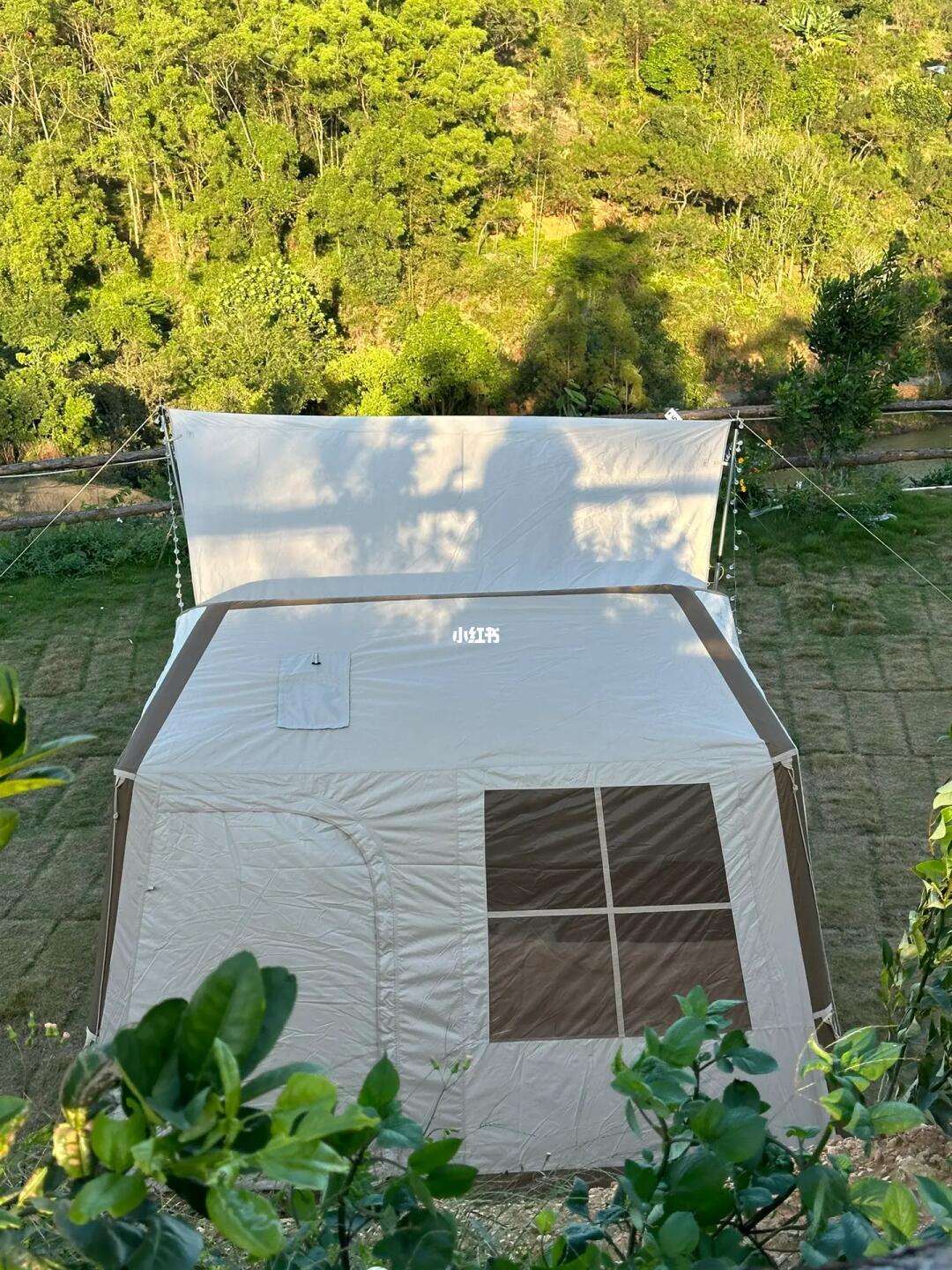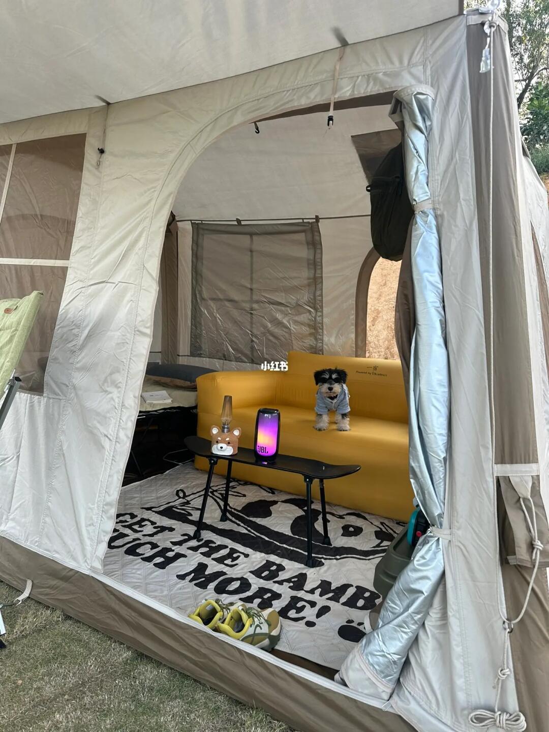 每次露营其实都会带不同的帐篷,这次带的是新入手的自动充气帐篷,真的强烈安利这个专门做充气帐篷的国产品牌!这是第二次回购了,第一次购入是充气躺椅沙发🛋️这次是为了配套我的屋脊帐篷,配上了很舒服的沙发!全自动充气就是好,完全不费脑不费腰!带上天幕重量不到15kg!为了测试稳定性,这次在超级大风的山顶露营不拉风绳也很稳,超有安全感!6扇对流窗户,有涂银不怕晒,挂点多下次可以带上衣架挂衣服了!