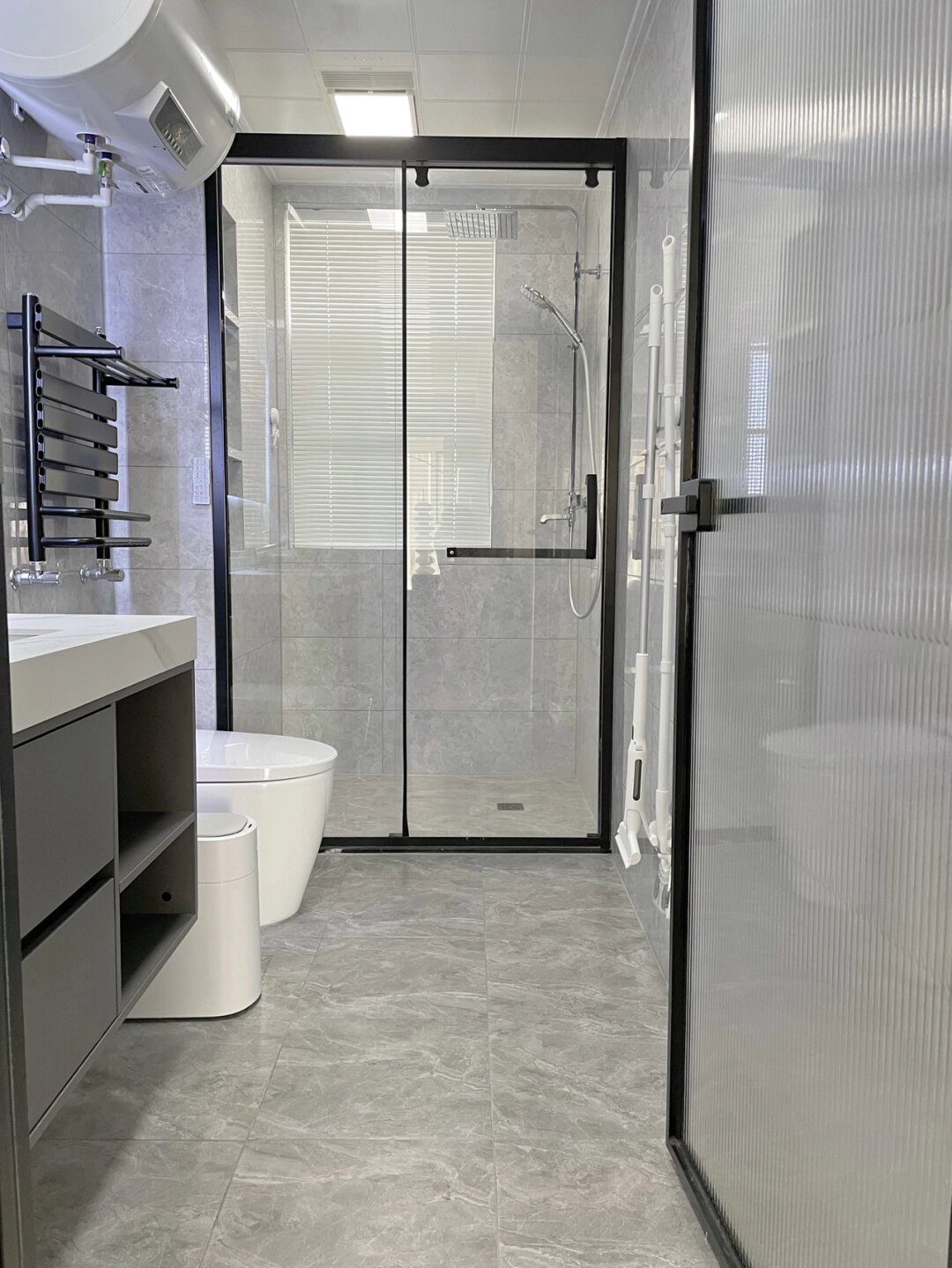 6 ㎡黑白灰卫生间设计|尺寸大公开 之前分享过我家卫生间,虽然回答过,但是还有很多新来的小伙伴问我具体尺寸,所以会定期给大家整理一下,还有近期的浴室好物分享~ _ 卫生间尺寸: 长3.6m宽1.7m(约6个平方) 浴室柜尺寸: 长1.1m宽55cm高85cm 淋浴房尺寸: 长1.2m宽95cm _ 关于风格: 整体是以黑白灰为主,属于现代简约风吧,地砖是哑光防滑的,上墙瓷砖是亮面的,都是深灰色,墙面砖尺寸:30cm80cm.地面尺寸:40cm40cm。 _ 浴室好物分享 _ 卫生间有个好用的垃圾桶真的方便太多,以前的垃圾桶还要每次塞的满满的都要自己收拾,不卫生也不方便,自从有了这款垃圾桶,再也不用自己动手了,不仅能自动感应开盖,还能自动打包垃圾,打包完后会自己换垃圾袋,简直太好用了,真的后悔没早点入手! _ 湿厕纸我应该不是蕞后一个知道的吧,用了一段时间后真的爱上了,简直停不下来,尤其是在经期,特别亲肤柔软,成分温和的同时清洁力也足够强,而且可以溶于水,也不用担心会堵马桶~ _ 牙刷架白色的外观太好看了,而且不仅可以收纳杀jun,还带风干功能,这样牙刷每天都能干净清爽啦~~ _ 以前擦玻璃或者窗户都要用抹布还擦不干净,这个就方便好用多了,杆子长短还可以调节,非常实用。 _ 好啦今天的卫生间分享就到这了,下期见