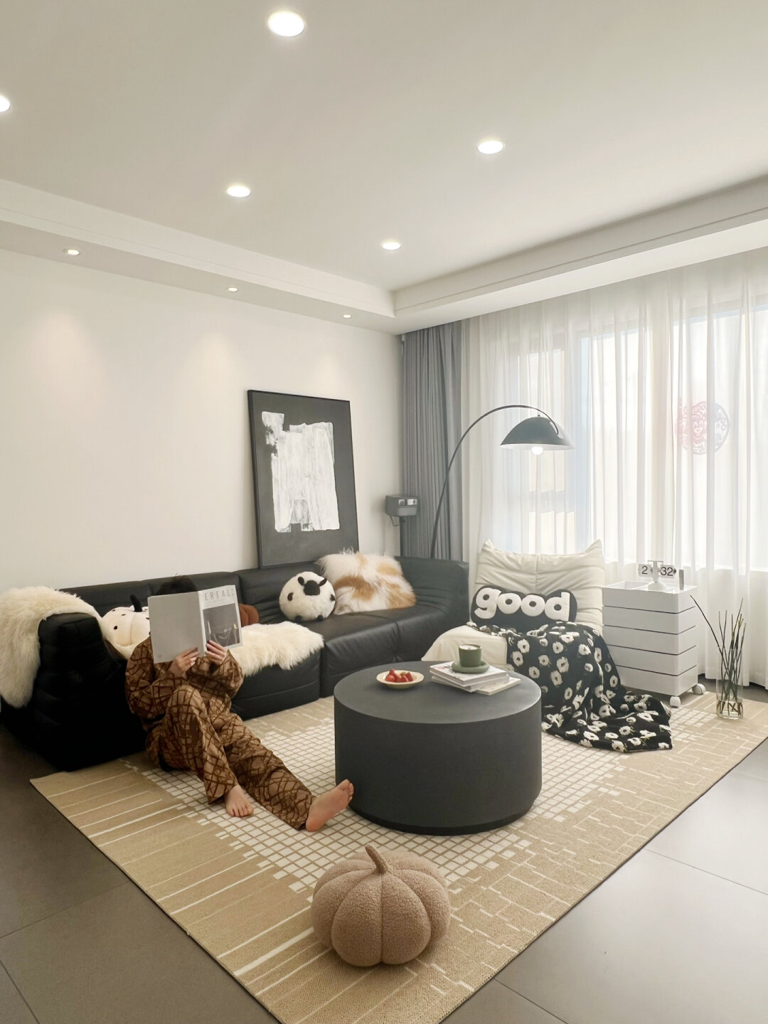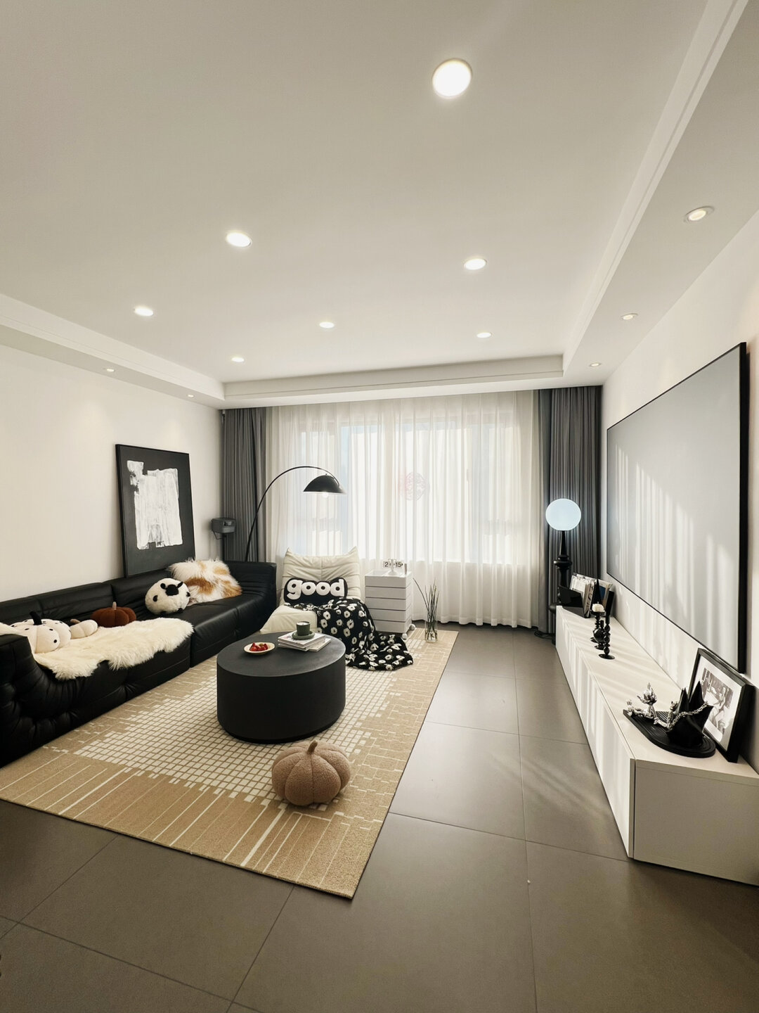 6w改造|历时三个月,这样一切都值得 6w改造|历时三个月,这样一切都值得[微风] 好多姐妹都不相信我家房子改造硬装只花了6w 其实硬装很简单,主要靠软装的装饰.在材料健康的情况下,有最少的钱办最大的事儿.下面就来说一下省钱细节. 1[微风] 全屋乳胶漆 全屋大白墙,也没用做造型复杂的背景墙,简单基础的墙面,无论是搭配挂画、还是乳胶漆裂缝,后期补起来都很方便.最重要很省钱哈.~统一刷的嘉宝莉的儿童漆,耐脏,有点小污渍也可以直接擦洗干净,色号:纯粹白 YR 26 92 03-P 2[微风] 无主灯吊顶 虽然客厅做了无主灯,很多宝宝觉得价格比偏高,但是省掉了买主灯的钱,筒灯[微风] 射灯,就可以完成客厅的照明,不仅放大延伸整个空间,打扫卫生的时候也很快乐·~ 3[微风] 地砖 全屋通铺棕灰色哑光地砖,不仅空间显大效果也真的好看,没有光污染搭配家具很高级,便宜的价格又很方便打理,除了顽固水渍,平时只要机器人清扫就好了,看上去就好像自流平一样,喜欢的宝宝真的可以放心安排. 4[微风] 屋子里铺一块好看的地毯,可以提升整个屋子的氛围感,一套让人赏心悦目的睡衣,踩在柔软的地毯上,点上一款好闻的香薰,追一部喜欢的电影,不为了其他,只为了每次宅在家中的那份幸福感. 家里好闻的味道可以抚平情绪让人放松,绿色也能在 营造春意盎然的氛围感~ 每次在家,就不断的折腾自己的小家. 努力的目的是为了享受美好的生活.我很喜欢现在简单平淡的生活.