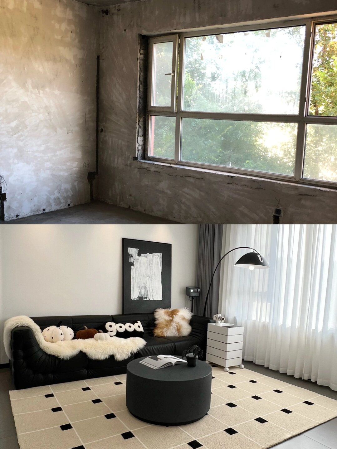 6w改造二手房|小区邻居都要来复刻我家~ 63平的小家|小区邻居都要来复刻~ 凡木小家的干货分享又来啦~. 如果你也和我一样购房时预算有限,那不妨购买二手房拆掉后按照自己的喜好重新装修一番,也可以有很精致又好看的家.下面我就来总结一下我家的干货分享. 几点经验来总结分享一下: 1.装修的时候,如果有一定的时间,可以自己购买主材,外包清辅. 这样主材选择的空间大,材质也比较好. 2.预定的时候确定好清辅的材质和品牌和价格,避免装修增项,材料进户的时候一定要核对好对应的品牌. 3.一般家庭,预算不高的话,硬装真的不用选最贵的,相比较只选最对的. 4. 无主灯的设计可以延伸空间感,小户型也可以显得很大,后期打扫卫生的时候也很方便,智能灯光可根据季节来调整自己需要的色温,幸福感满满. 5. 黑白基础色系的家,简单又不容易过时,全屋大白墙,也没用复杂的背景墙,简单的基础墙面,搭配挂画软装都很好看. 即使后期乳胶漆裂缝,~统一刷的嘉宝莉的儿童漆色号:纯粹白 YR 26 92 03-P.耐脏,墙面可以直接擦洗干净。 6.家装好看的灵魂是放一块地毯,营造温馨舒服的氛围,可以让家变得很温馨,我家搭配的优立羊毛地毯质感很好,踩上去很软糯,造型也十分别致,款式简单又高级~ 这样干净整洁的家,你们是不是很好奇我平时怎么清洁打理的,其实打扫最麻烦的莫过于地面和厨房,地面一般我都选择机器人,云鲸j3的鲸灵托管模式太适合上班族,不仅触屏易操作,使用起来深得人心,[微风] 智能识别赃污,重复清洁到干净为止,还能扭屁股延边清洁,会根据地面的材质选择适合的湿度和拖地压力.厨房清洁我一直都用爱舒柔的厨房湿巾,每次做完饭就擦一下灶台,省去了洗抹布的烦恼,湿巾有杀功能,超大一张很厚实每次抽一张,厨房就变得干干净净,最主要一包可以用很久,我妈都说好用又实惠.. 这样简单平凡的小家你们喜欢么?
