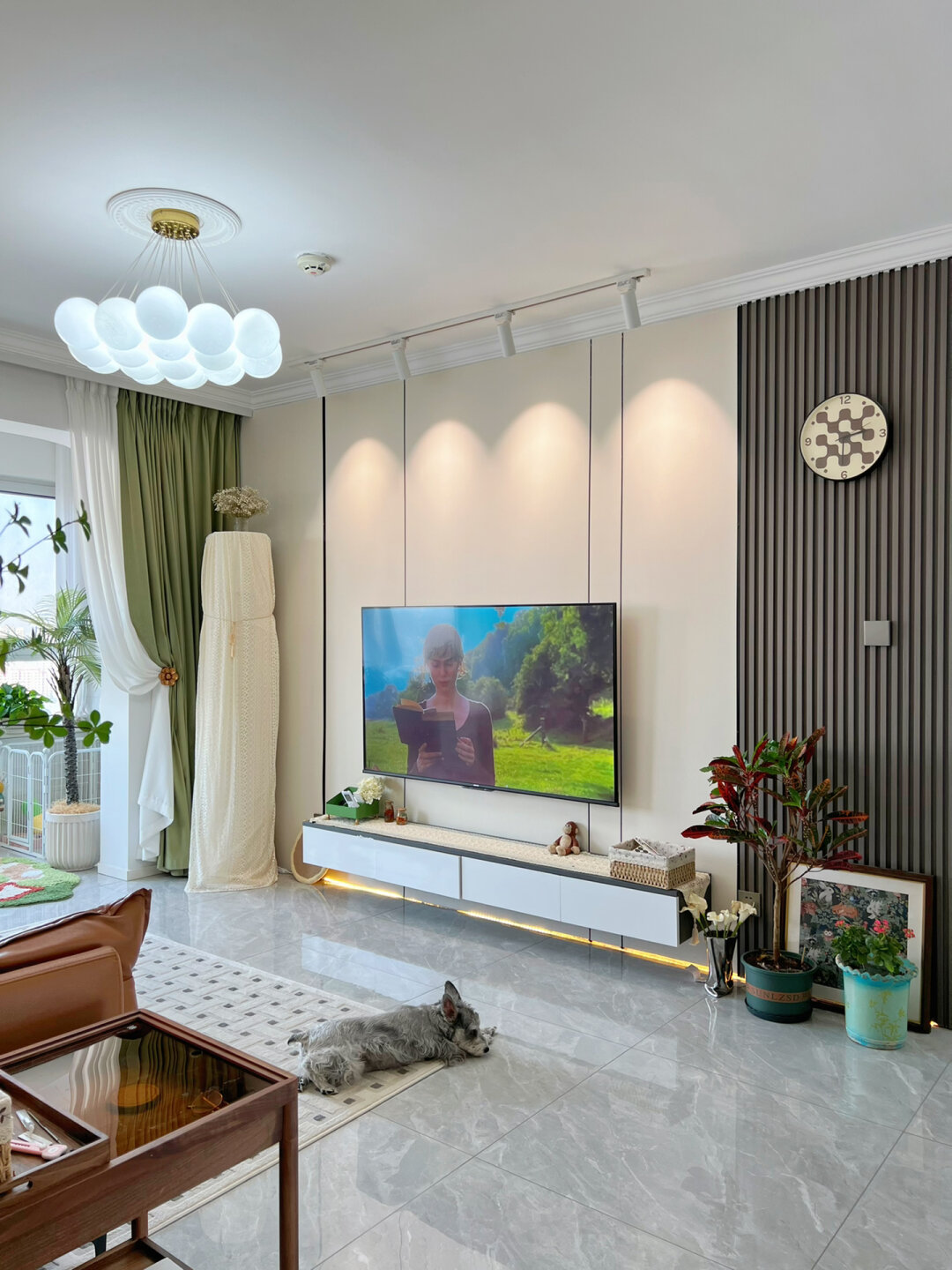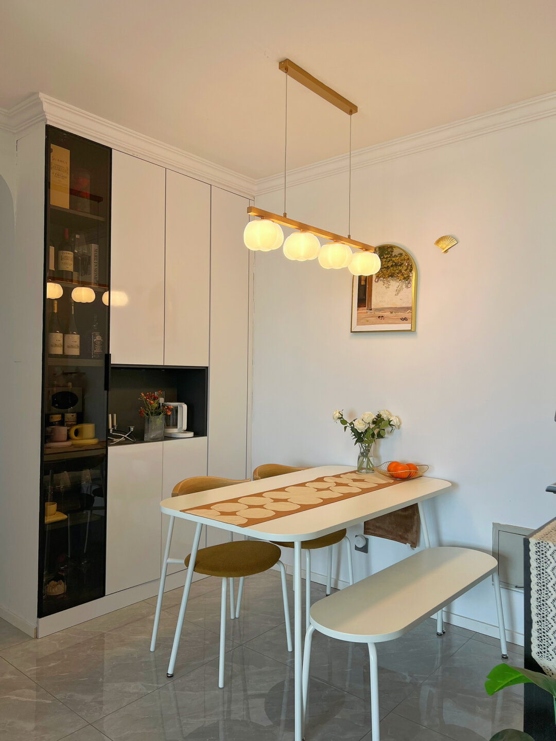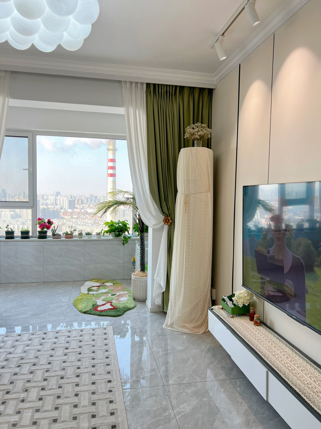 6w自装85平,真的便宜又好住啊[微风] 套内面积只有85平,三室一厅一卫 和先生共同打拼一套房,预算不足,就选择了自装,6w搞定所有硬装~总结出来分享给你们~[合十R][合十R] · 首先装修一套房子你要知道的步骤: 第一步:确定你想要的装修风格,多做功课 第二步:拆除、砸墙、改水电暖(想拆的地方别犹豫) 第三步:找瓦工,建材市场多对比买材料,防水、水泥沙、瓷砖、地漏、背胶 第四步:定制家具或者买把板材让木工打 第五步:找油工,买乳胶漆 - 关于设计 其实我虽然没找设计师,但装出来效果还是很满意的,主要参考了某书和zhu~小~帮 案例很实用,除了整屋的图片案例,还有3D展示,能够720度立体多角度地看到不同风格的家装效果,还能搜到和我家同户型的案例,方便抄作业 [微风] - 1无吊顶[微风] 石膏线 没有做复杂吊顶,简单走一圈10cm双眼皮石膏线,更显层高. - 2大白墙[微风] 拱门 客餐厅全部大白墙,显亮又宽敞,真的视觉放大一倍,拱门是用的石膏拖,省钱又好看. - 3无过门石[微风] 瓷砖通铺 瓷砖对缝通铺至阳台,不做过门石,增加延伸感,视觉显大. - 4简单软装[微风] 同色系家居用品 客厅软装搭配大面积使用尽量不超过三种颜色,比如窗帘、沙发、地毯尽量选择同色系,多参考色彩搭配,可以在zhu~小~帮上面看一下3d效果,不容易出错,还有很多装修案例都可以参考,装修小白也不怕踩坑了~