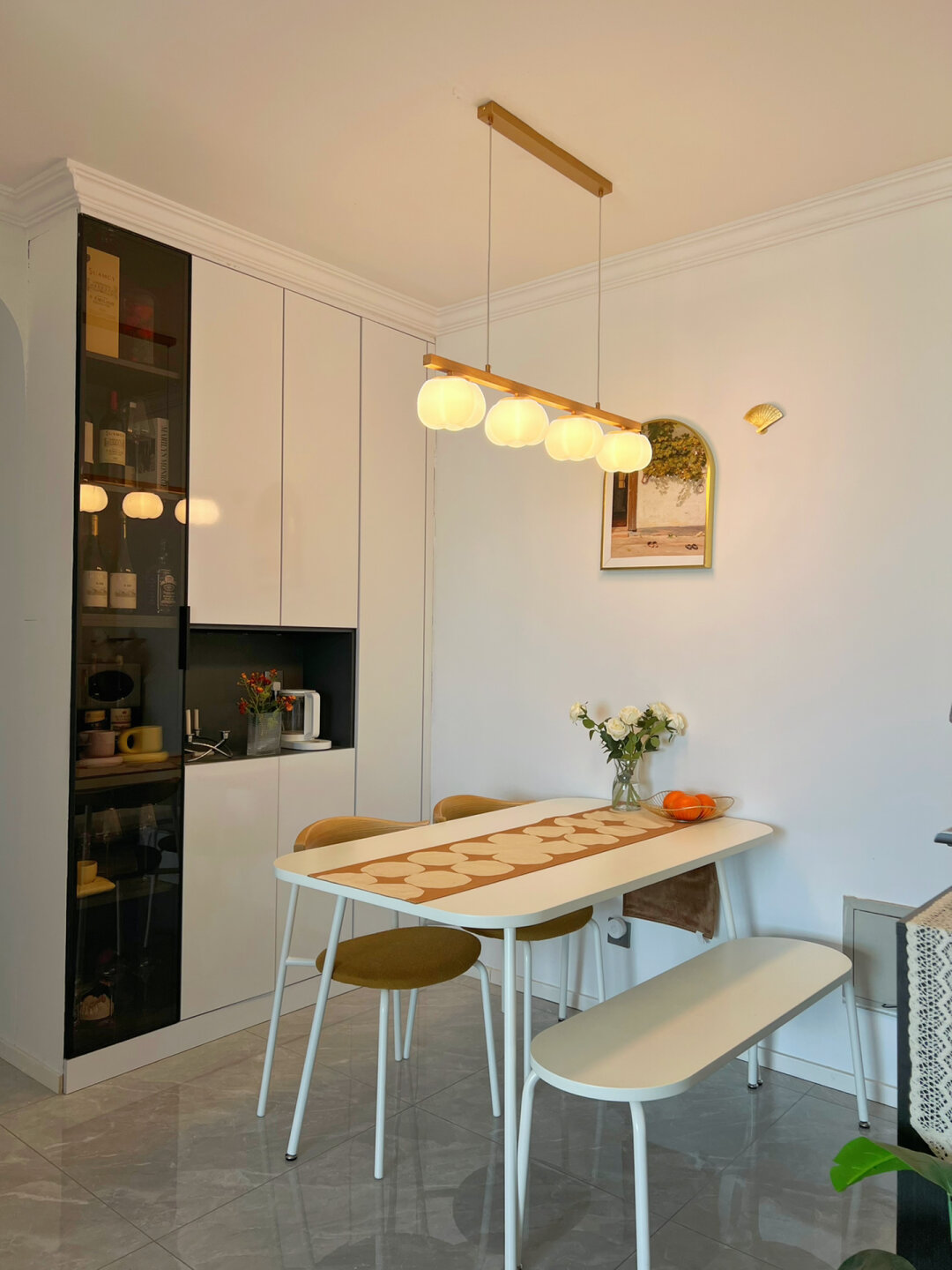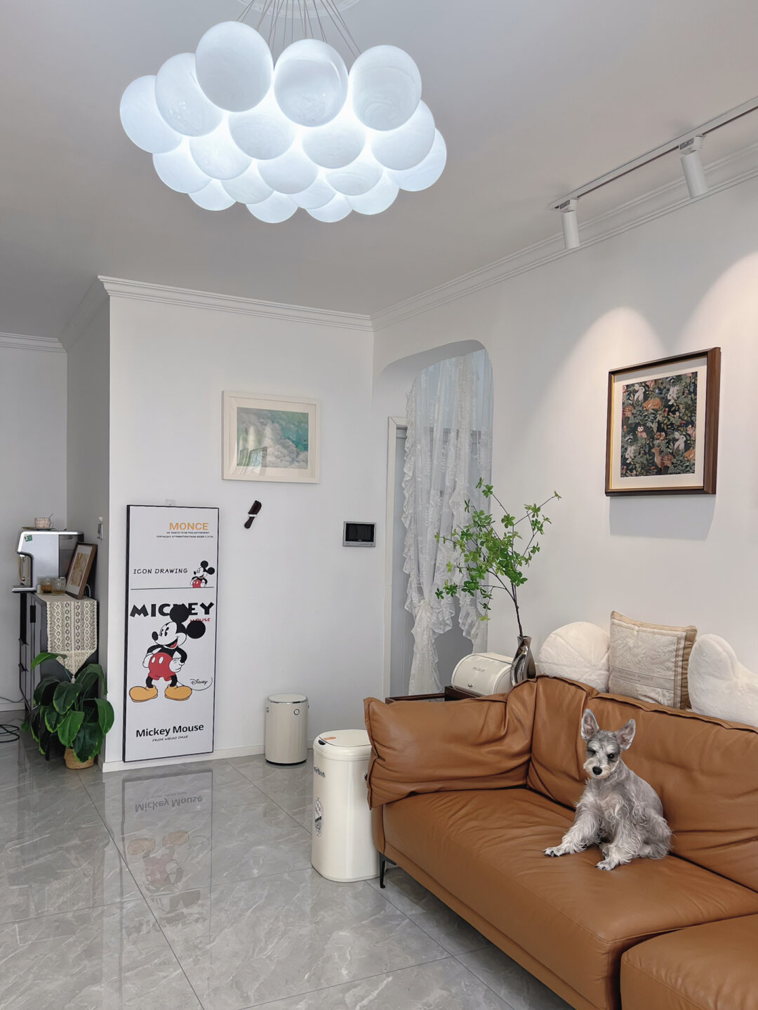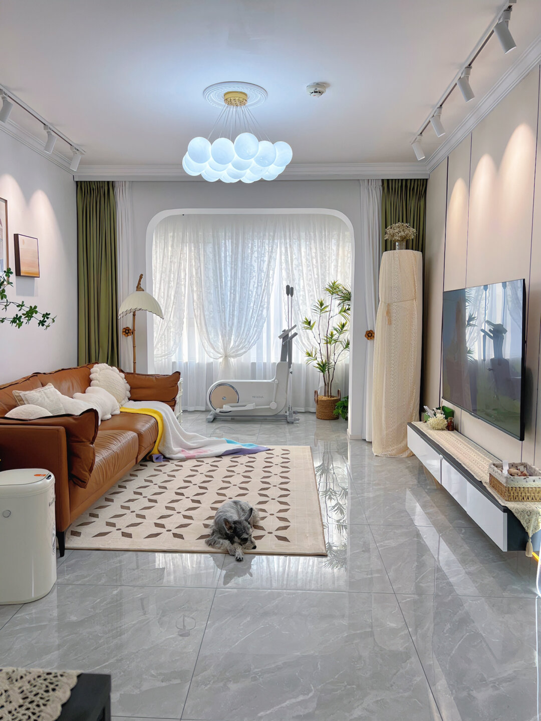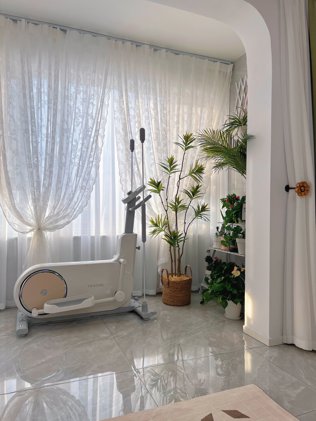 6w自装109平,但朋友说像30w啊 我家建筑面积109平方,套内82平,硬装6w,软装+家电6w左右~每次朋友来了都说,看着很贵[酸][酸] - 很多小伙伴问我家属于什么风格,其实不用过多纠结于风格,按照自己喜欢的样子去装就可以了,我很幸运,最终住进了理想的家 - 我总结了关于我家装修的几点,让家显大 1确定风格 我装修前做了很多功课,风格最初也是摇摆不定,普通人的家还是要清清爽爽一点,就一切从简了. - 2轻装修 ,重装饰 硬装真的越简单越好看,简简单单,看着就宽敞舒服,软装可以根据自己喜好随意搭配. 3越简单越显大 不做吊顶,直接安排一圈10cm石膏线,不压层高,视觉上空间感就会变大,也不用担心吊顶积灰的问题了~ - 4浅色系地砖[微风] 通铺 我家是浅灰色,80×80cm规格,全屋通铺至阳台,增加延展性,同色系美缝,有种融为一体的感觉,看起来就会显大、宽敞~ - 5大白墙yyds 我家客餐厅是大白墙,白色真的在阳光下会反光,视觉上就会让人觉着宽敞,也好搭配软装 - 6大面积颜色尽量不超过三种 像窗帘、地毯这样大件,可以多参考颜色搭配~卧室碎花四件套我搭配了毛绒绒的拼色毯子,提高了卧室的色彩饱和度~ - 7植物是最好的软装 我把阳台一角做了花架,各种颜色的植物和鲜花搭配起来真的很有生活气息~异性百合竹是仿真的,用来装饰,简直比真的还真[嫌弃] - 其实装修为了更好的生活,自己喜欢、住着舒服就可以了,同时不管什么年龄段都要管理好自己,才能真正地提高生活品质~ - 开始坚持打卡椭圆机锻炼了[嫌弃]我家这个是小体积的不占地方,一个机器三种用法,来跟大家普及一下吧~ AI速然环可以加速燃烧脂肪 晚上睡前我一般会用飞力士棒,可以紧致身材,起到塑形作用~ 随着年增长臀部下垂,可以每周三次翘臀模式 锻炼身体是个慢过程,新手可以跟着专属ke 程锻炼,练习一会就觉着浑身的细胞都在活跃[馋嘴]所以大家坚持下去哟,加油[加油R] 猜你们想知道的 [微风] 窗帘:三千金窗帘 [微风] 阳台椭圆机:野 小兽 [微风] 地毯:毯然 [微风] 卧室毯子:ELLEDECO [微风] 四件套:唱妈小铺 [微风] 垃圾桶:yona [微风] 米奇落地镜:见造 [微风] 仿真百合竹:森空间 [微风] 装饰画:三小姐的店