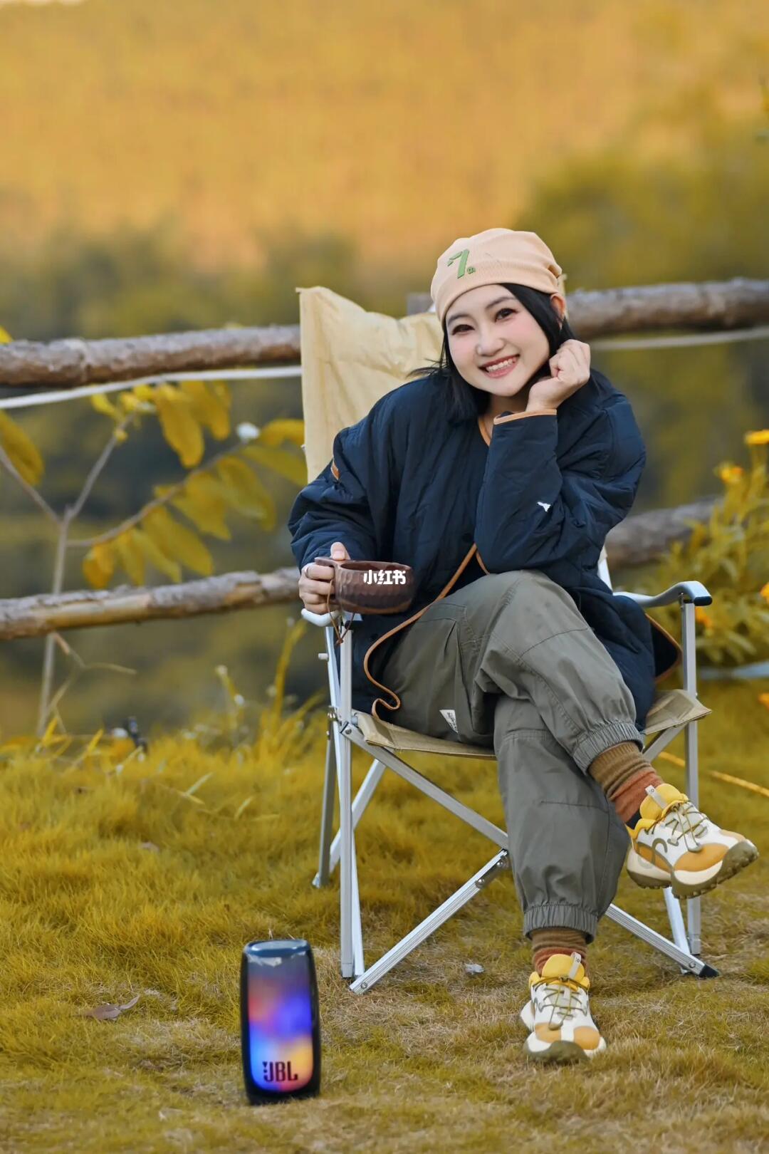 广东秋冬醉爱的露营季节到来了 这周继续带上狗子和音乐出发 整整在这里露营呆了3天2夜 提前在家里炖好了羊肉锅 放点蔬菜和豆泡就无敌美味 _ 这次露营带上了充气帐篷和沙发 把户外的小家布置的很是温馨 狗子🐶坐在沙发上听着音乐 懒懒的晒着太阳🌞舒服的不要不要的 _ 户外露营音乐和氛围感是很重要的 最近找到了JBL PULSE5音乐脉动5代这个好搭子 特别爱的一点是因为这款超氛围感 360度绕身灯光跟随音乐节奏自在变换 高低音独立双扬声器设计,放音乐听起来很舒服 IP67 防水防尘,防脱手挂绳设计让户外使用更安心👍 秋冬正是露营好时节,快一起带上音乐出发吧 户外OOTD 外套🏷️ IFL户外棉服 裤子🏷️安高若 鞋子🏷️花椒星球