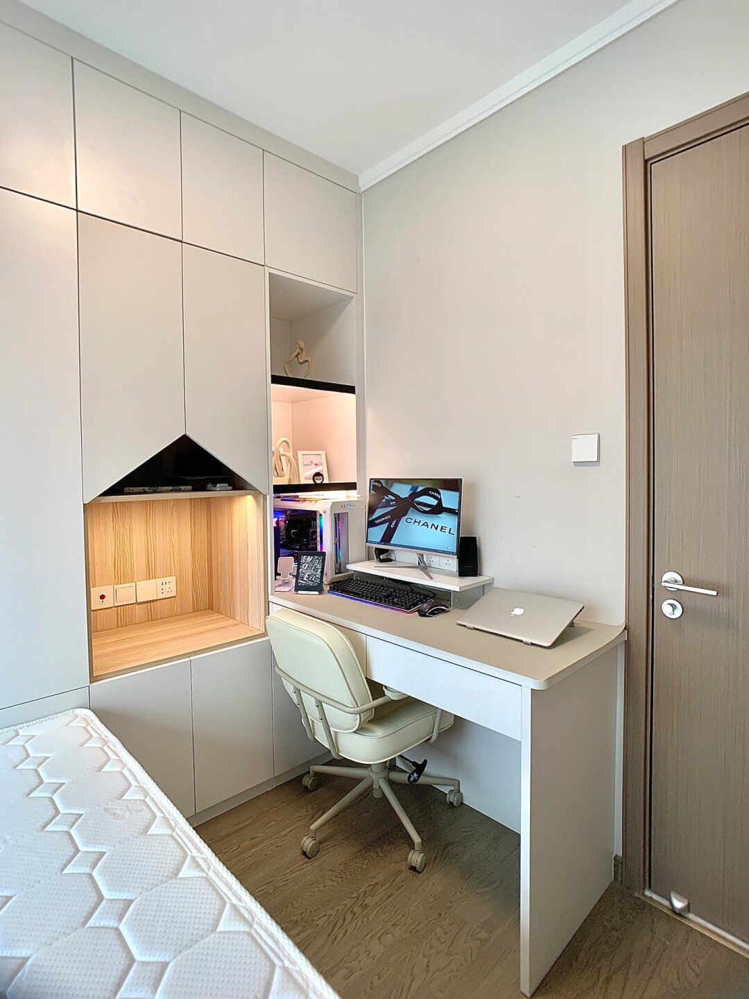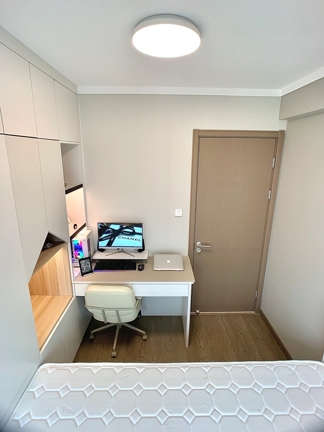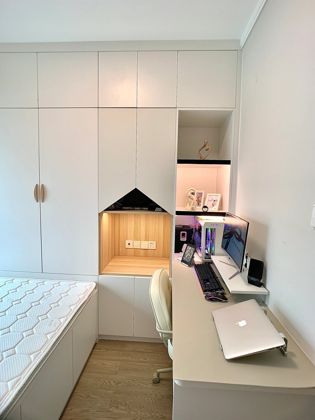6平米次卧我坚持装榻榻米桌垫太香了 (最后附尺寸设计图!!!) 都说榻榻米鸡肋,容易发霉不通风,但是我家还是坚持做了榻榻米设计。入住一年多了,发现榻榻米设计对于小户型来说,真的太适合了,不仅好看还实用。 我家套内67平三房两卫次卧只有6平,房间尺寸2.64m*2.66m。利用飘窗做榻榻米设计,榻榻米+衣柜+书桌,这样能更好的利用空间,收纳、休息、办公同时拥有。材质用的原木结构板,颜色是香榭白,开放格做了小房子造型设计。 书桌尺寸118*52,加上抽屉高度80cm,抽屉高度14cm,空间足够摆放台式电脑和动态本电脑。榻榻米书桌面比较容易刮花,最近安排了张书桌垫保护桌面,试过了好打理,双面的过几天看腻了还能换个面铺。 今天的分享先到这里有疑问的姐妹欢迎评论区留言~