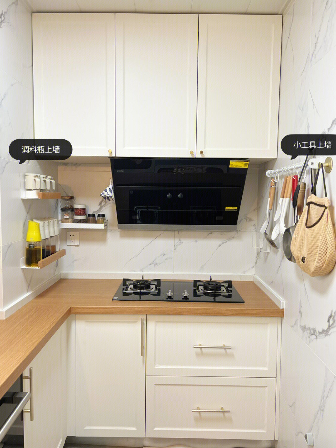 6平米原木风小厨房的装修干货 哈喽大家好呀 我是梦蝶 我家的厨房改造啦 原木风的感觉 复古又好看 - 厨房设计 尺寸3.37m1.7m宽 面积6平米 u型布局 纯白平板铝扣板吊顶 奶油白柜 木台面 - 细节设计 大面积白色搭配原木色, 让空间显得干净清爽 水槽上方加小吊灯增加氛围感 台面保持空无一物 能上墙的全部上墙 燃气热水器怎么遮丑 根据燃气热水器以及管路尺寸 制作一个柜子 柜门百叶 上不要柜子顶板 下不要柜子地板 预留散热空间 旁边还做了小格子 可以收纳日常使用的纸巾 水槽下方收纳 双层收纳篮收纳厨房清洁用品 收纳盒收纳抹布 厨房比较小 我选择了体积比较小的净水器 选购心得 [微风] 滤芯不外露,不占用橱柜空间 外观跟家里的色调很搭 [微风] 水量大流速快的 水果洗蔬菜都没问题 可3.5秒接满一杯水。 洗果蔬淘米不用等待太久, [微风] RO反渗透膜的 可层层过滤水中杂质, 净化后的软水口感会很顺滑 滤芯寿命够我一家三口使用 3年, 减少了频繁更换滤芯的成本。 而且自己就可以更换滤芯, 不用约专门的师傅上门 小厨房选大单槽,好用又不占地方 厨房用品尽量统一色调, 同样以白色和原木色为主, 让厨房看上去更整洁