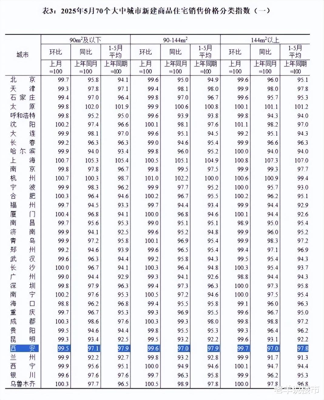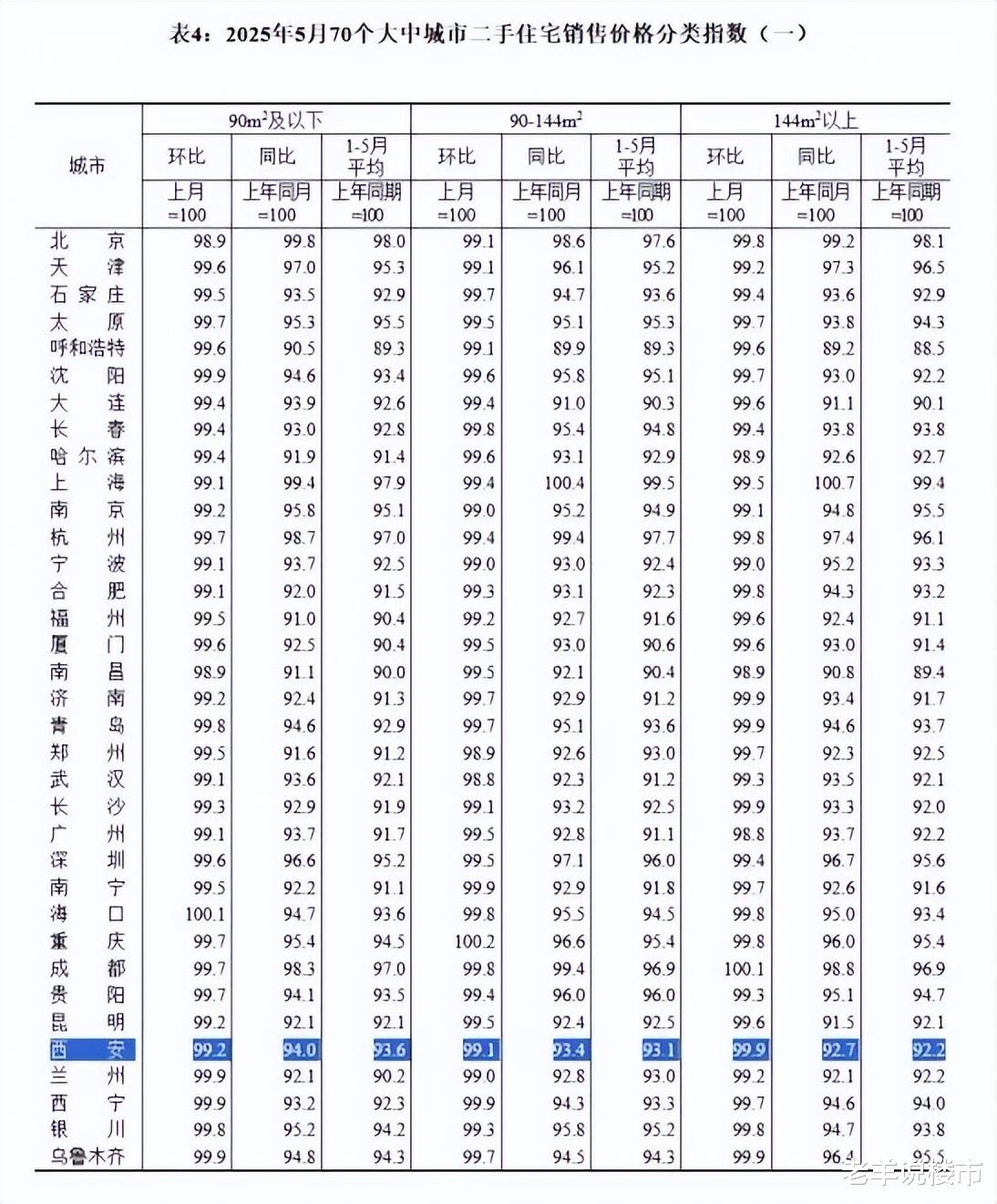 西安新房环比下跌0.4%,同比下跌3%,同期下跌2.1%。