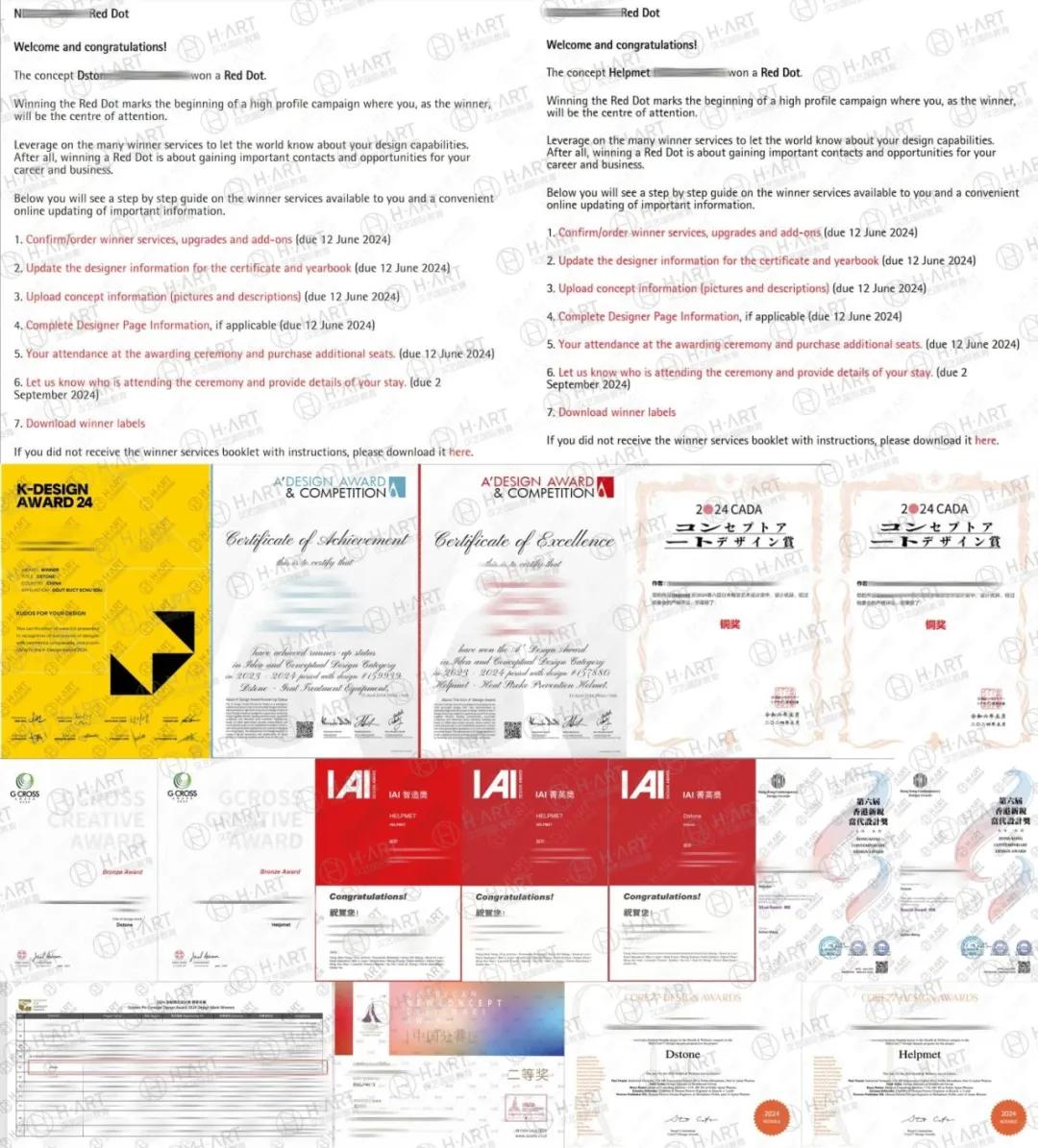 参加汉艺竞赛营拿下2张红点奖、戴森设计大奖中国赛区八强、core77、K-Design、A`Design等30余枚世界级设计大奖+实用新型专利