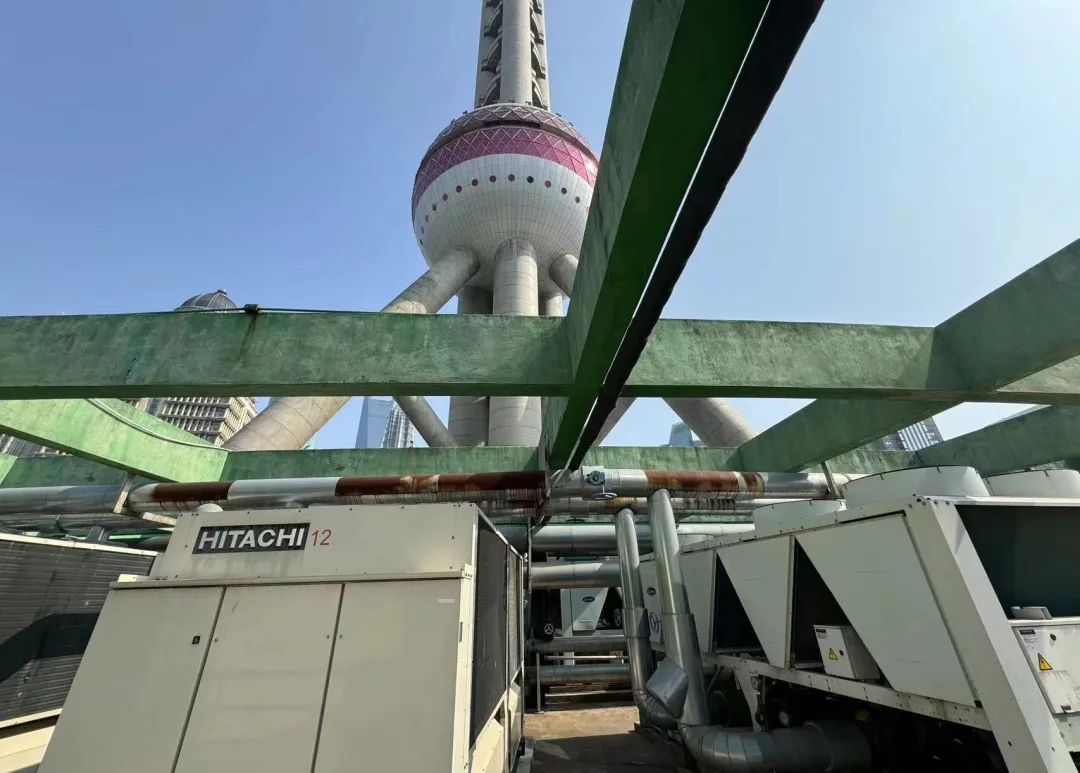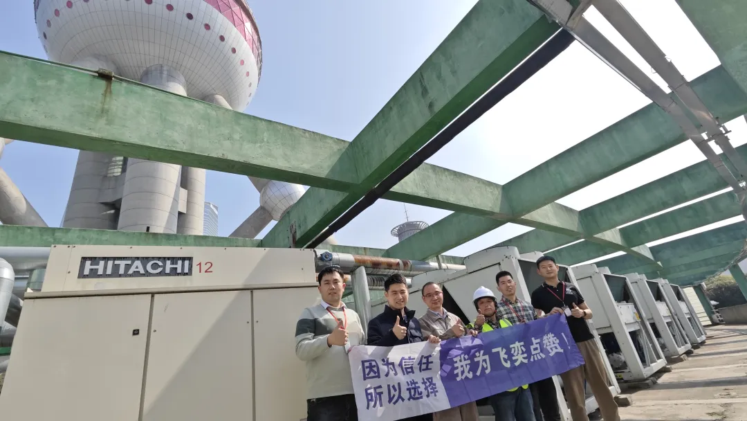 他们带着产品登顶东方明珠塔,经过二十分钟左右的操作,顺利将日立和开利的风冷螺杆式冷水机组完成对接,并调试成功。