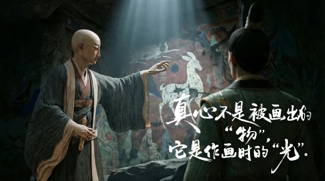 他们以莫高窟第257窟的《鹿王本生图》为内核,虚构了画师“李文远”作为主角,讲述他从迷茫西行、内心挣扎,到在壁画绘制过程中感受当地供养人、画师的“真心”,最终被信仰召唤的完整人物弧光。