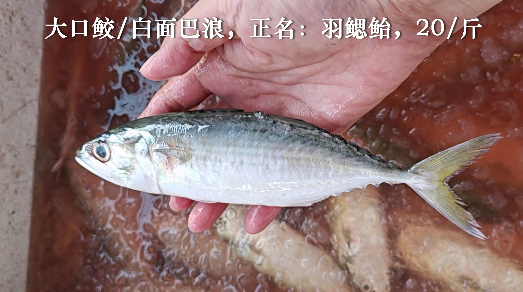 15、大口鲛/白面巴浪,正名:羽鳃鲐,20/斤,这个鱼肉很多,但口感粗涩,不好吃。烹调建议:包锡纸烧烤。