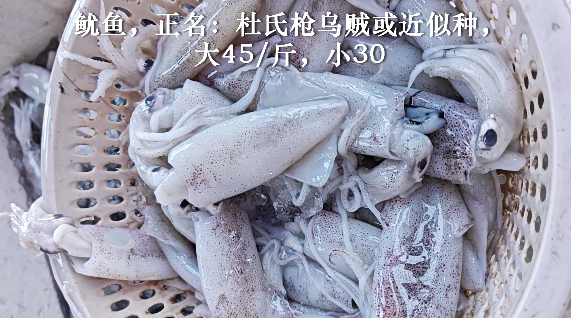 三、头足类:1、鱿鱼,正名:杜氏枪乌贼或近似种,大45/斤,小30,很受欢迎,不够卖。