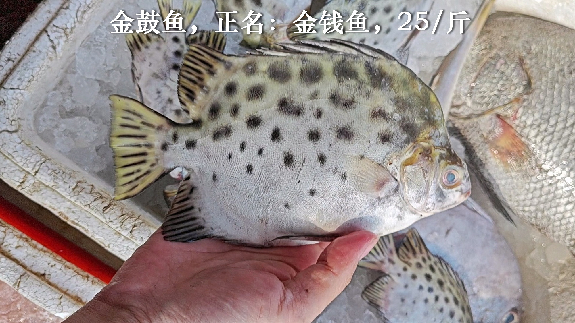 14、金鼓鱼,正名:金钱鱼,25/斤,今天的金鼓鱼有些规格很大,25就很划算,但新鲜度有点没把握,吃过才知道。烹调建议:清蒸、煮鱼汤。
