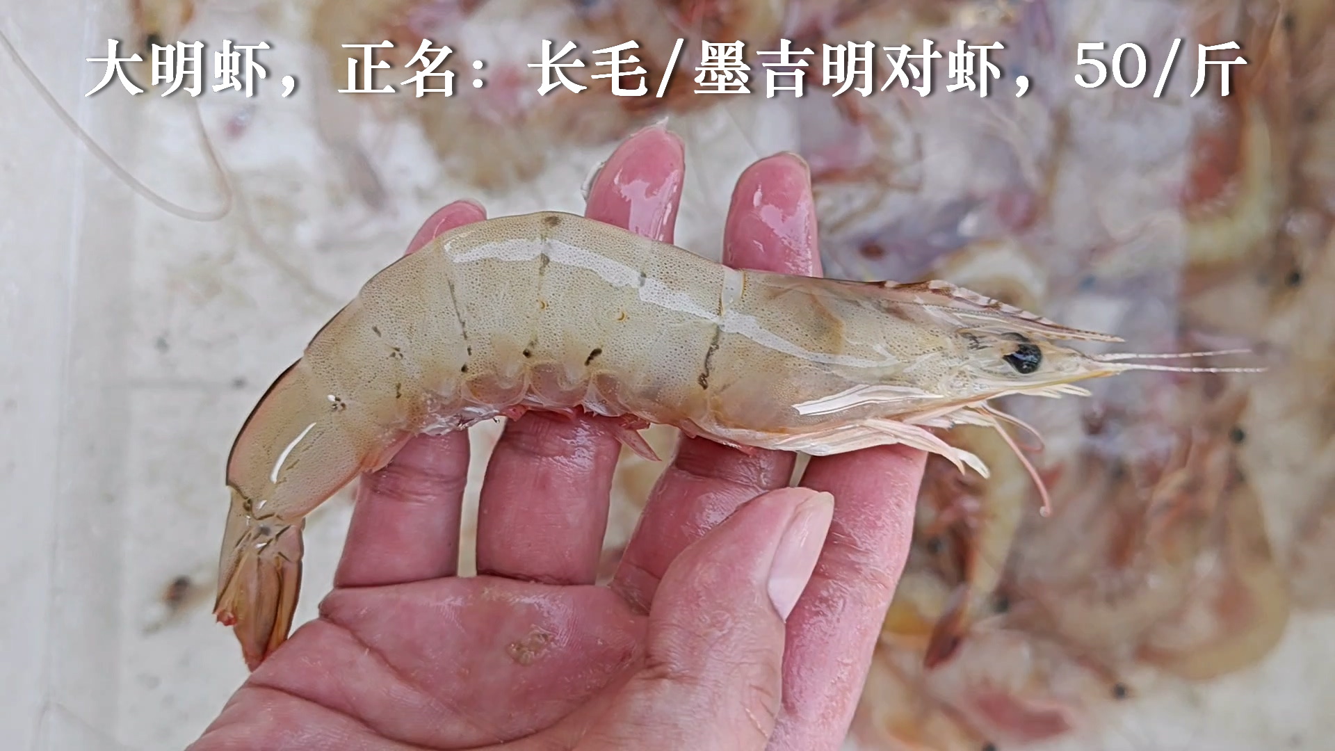 二、虾类:1、大明虾,正名:长毛/墨吉明对虾,50/斤,新鲜度和规格还可以。