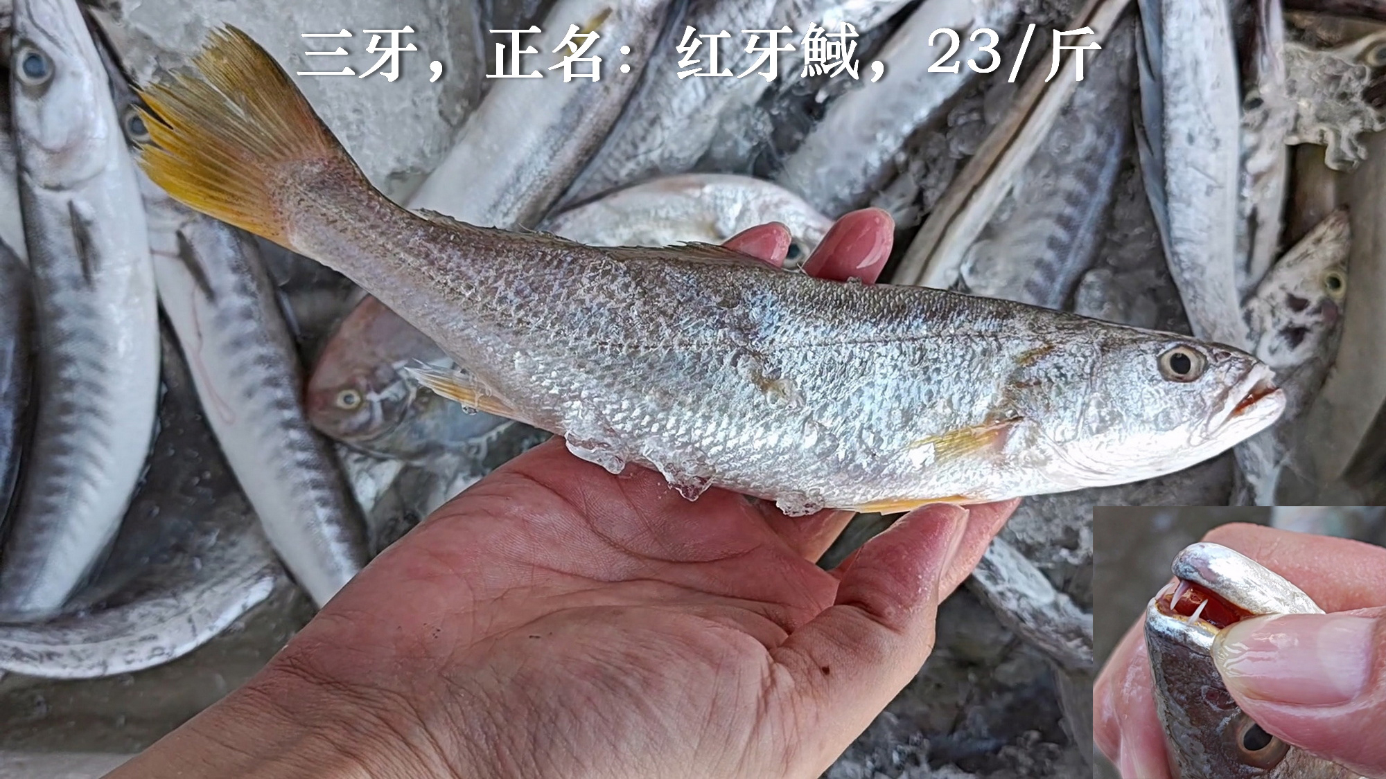 5、三牙,正名:红牙䱛,23/斤,三牙的食味不错,量大,制作鱼干更多。烹调建议:清蒸、干煎、煎焗。