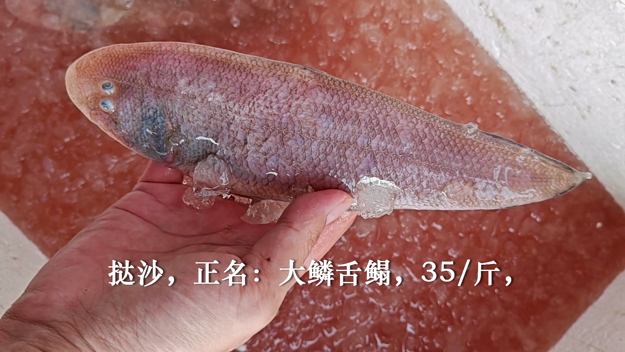 7、挞沙,正名:大鳞舌鳎,35/斤,粗鳞龙脷,口感没有细鳞的嫩滑,规格还可以。烹调建议:干煎、清蒸。