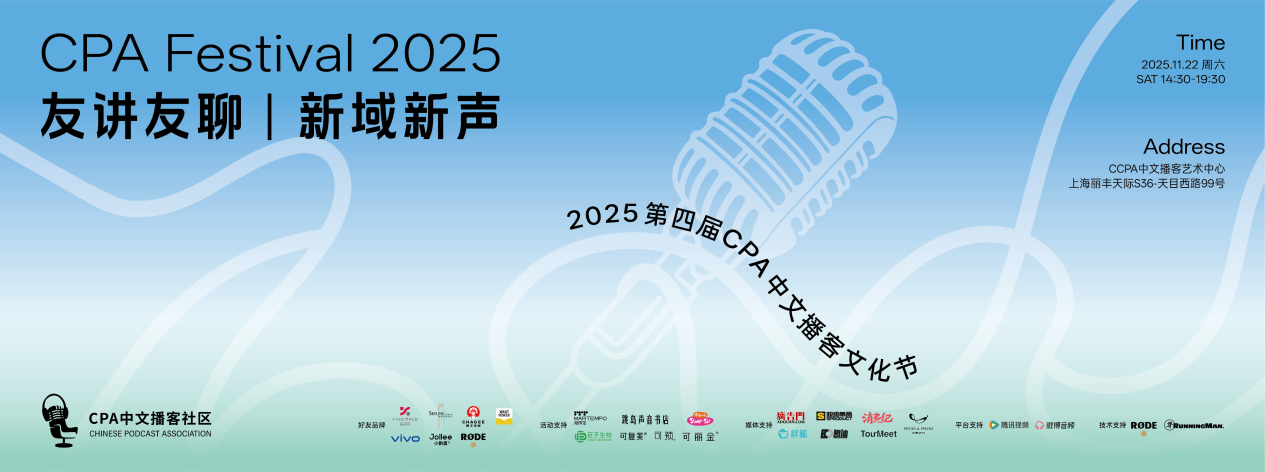 作为每年中文播客行业的风向标,第四届CPA中文播客文化节(CPA Festival 2025)于2025年11月22日在上海丽丰天际S36-CCPA中文播客艺术中心举行。活动颁发了第四届CPA中文播客奖,还举办了业内首个面向品牌主和商业伙伴的播客营销发布会。