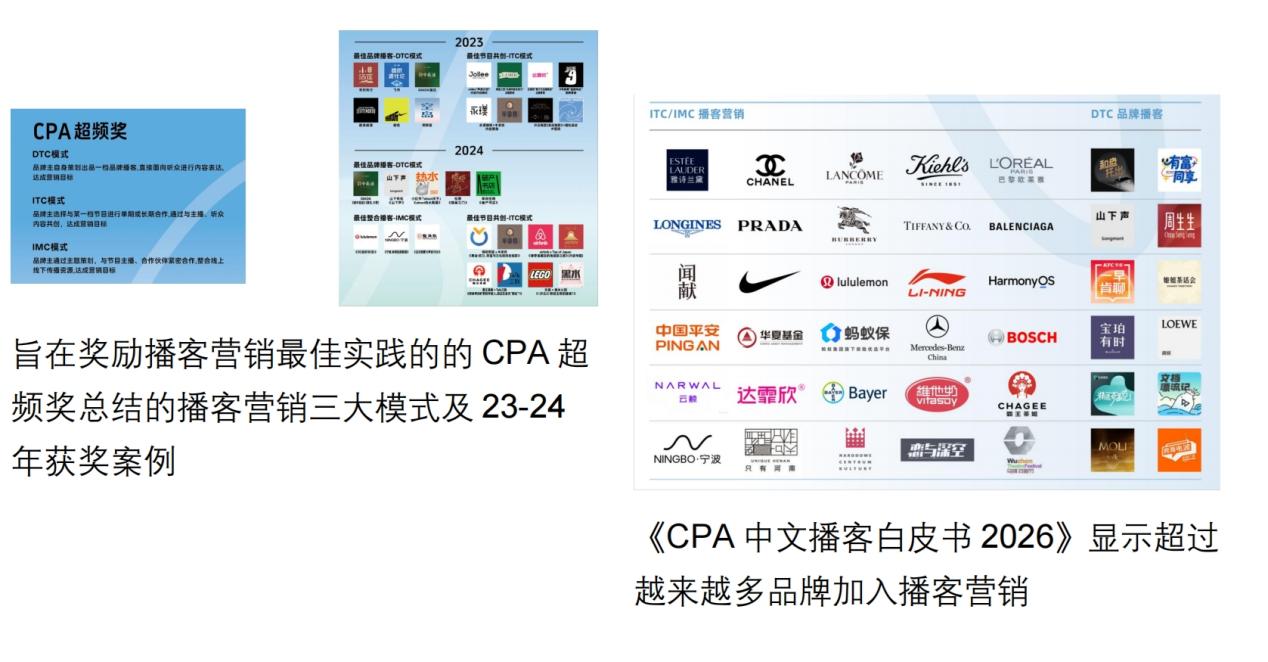 除了颁发CPA中文播客奖,活动当天还举行了行业首次针对播客商业价值和营销模式的主题探讨,并分享了新鲜出炉的《CPA中文播客白皮书2026(营销篇)》的部分内容。
