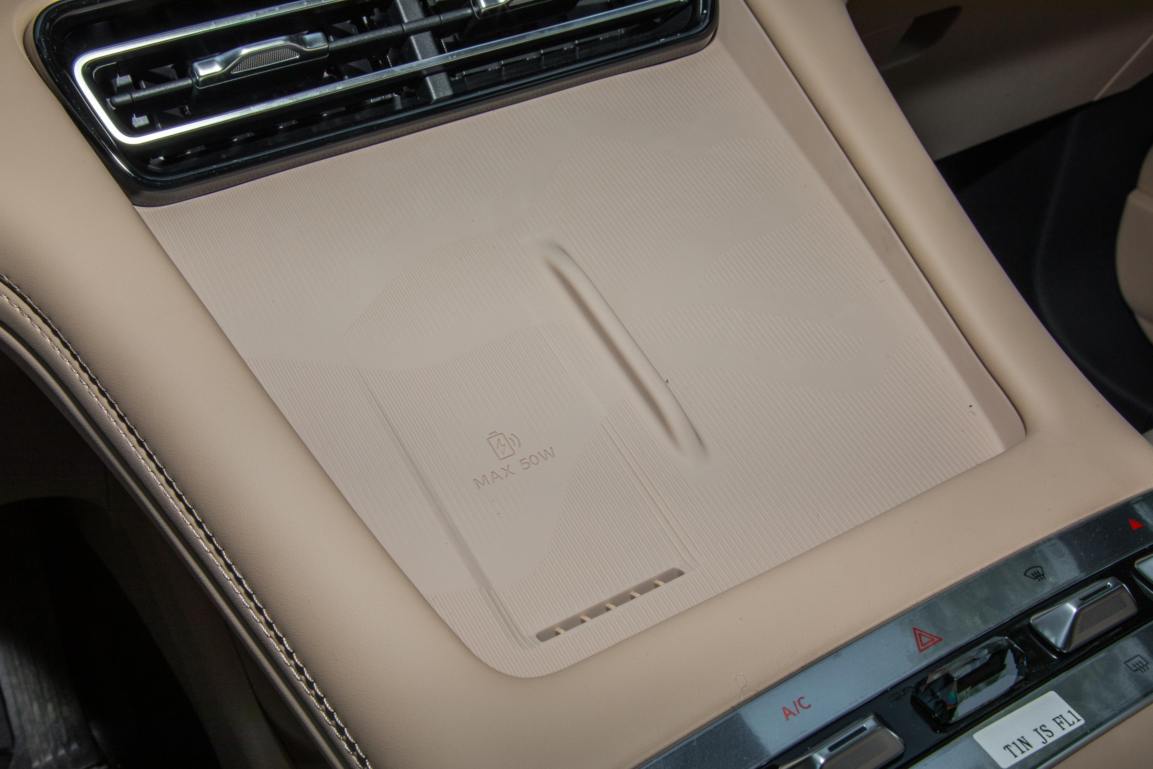 换挡形式采用电子式怀挡设计,这种设计在驾驶过程中操作起来十分便捷,同时也节省了中控台的空间,让车内布局更加规整。此外,车辆还配备了当下流行的手机无线充电功能,实用性较强。在手机充电板的下方,还设置了调节空调系统的拨杆按键,这种物理按键的设计,对于部分习惯传统操作方式的消费者来说,使用起来更加直观方便。