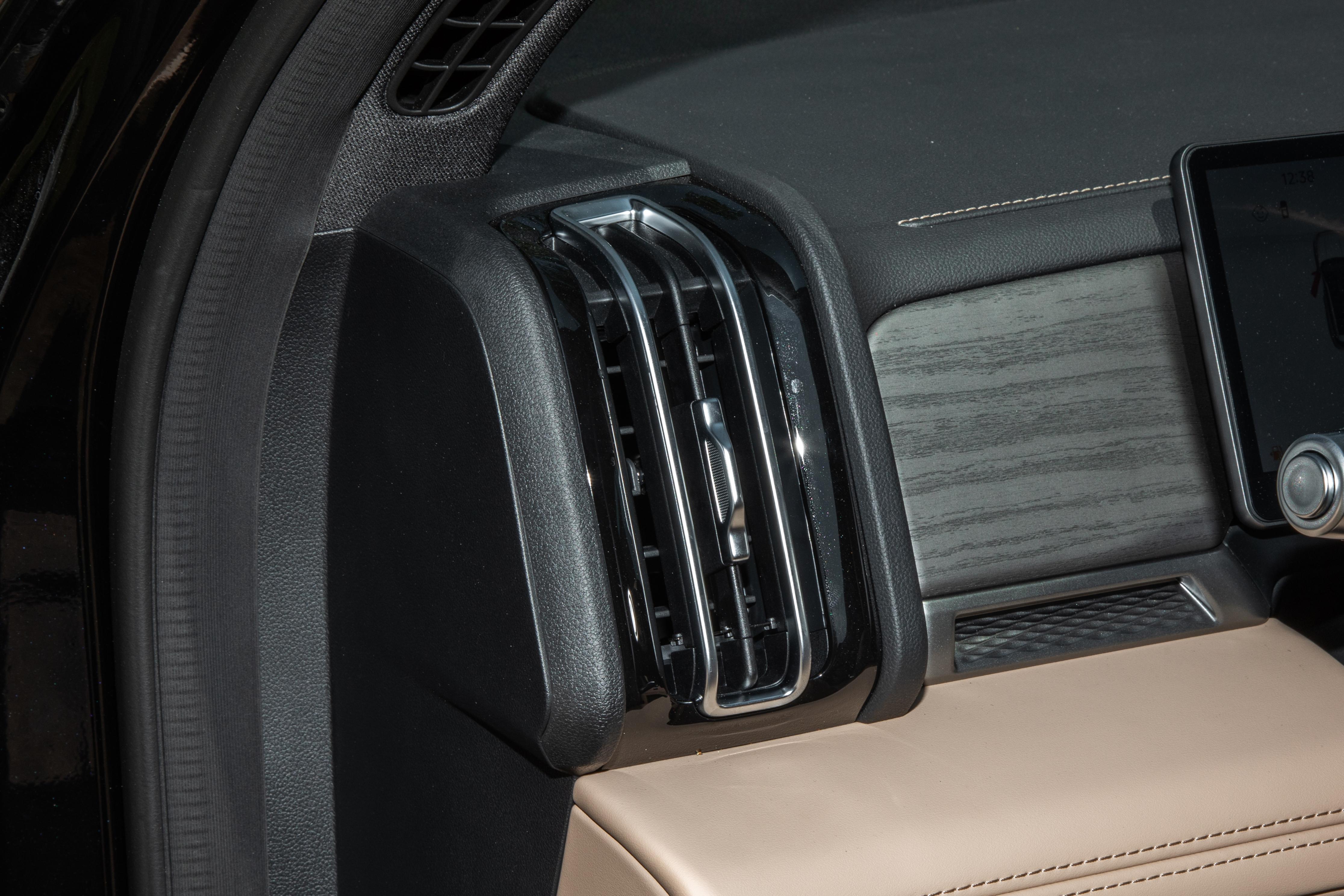 内饰采用环抱式设计布局,营造出较为宽敞的驾乘氛围。车厢内部大量使用皮质包覆以及木纹装饰板,搭配棕黑色双拼配色,呈现出一定的居家温馨风格,比较符合家庭用车的场景需求。中控台、车门板等经常接触的部位均采用软质搪塑包裹,触摸起来不会有硬塑料的硌手感,按压下去有轻微的回弹,质感表现不错。