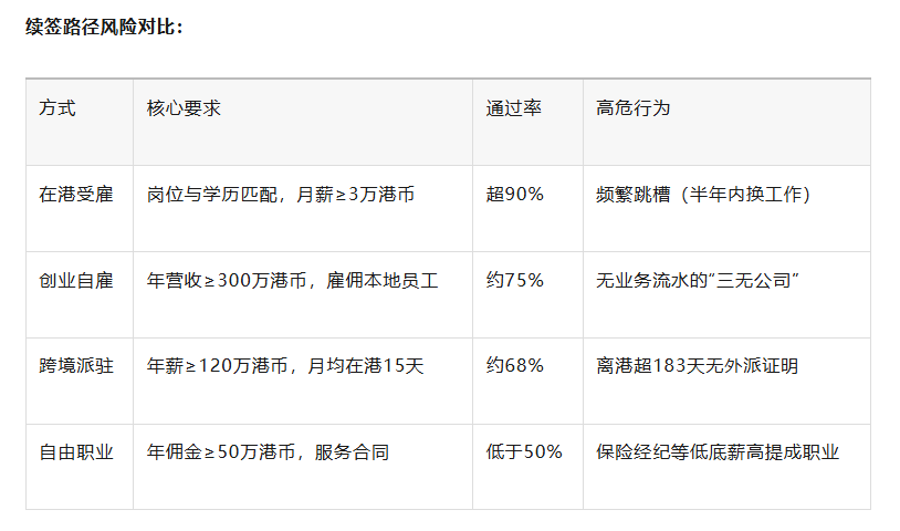 首次获批3年,续签需证明“通常居住”或对港贡献,如在港工作(稳定收入+强积金记录)、创业(真实业务+办公场地)或受养人在港读书。