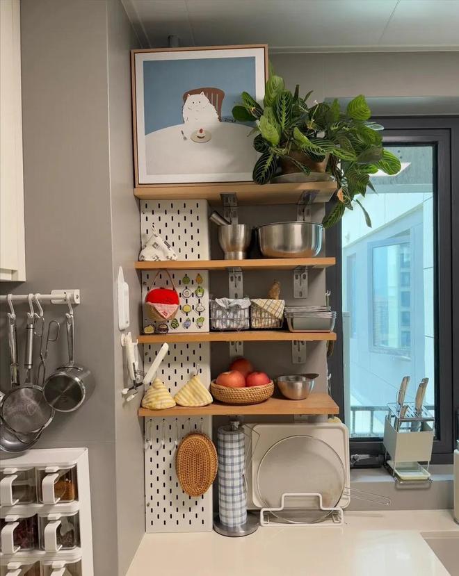 在网上买成品的隔板、挂钩,还有洞洞板,自己动手给组装上去后,是不是非常好看啊!
