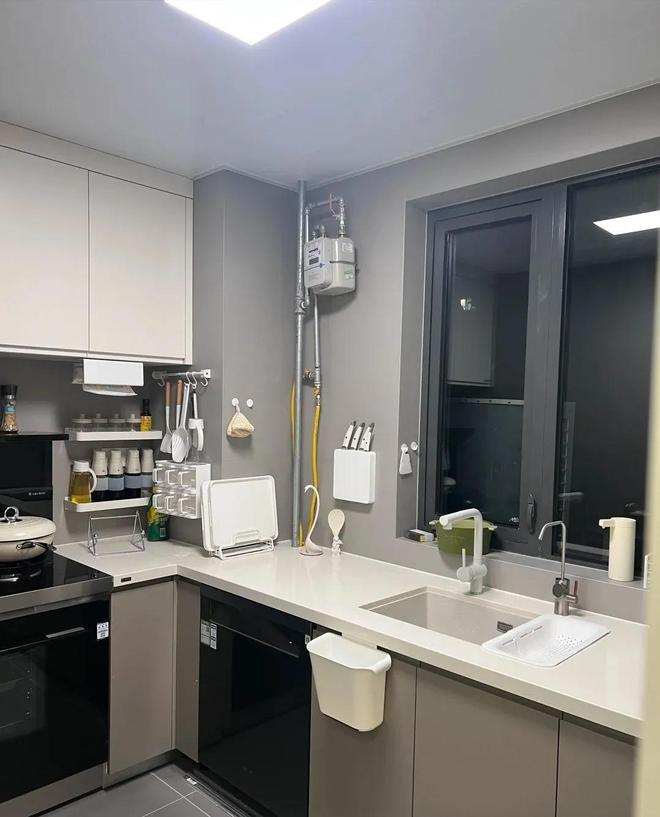 如果缝隙特别大的话,也不用担心,直接在网上买一个布帘子,上面会有精美的图案,挂上去后,不仅好看,还有一种“烟火气”。