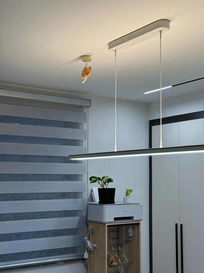 在装修房子时,当初想着灯线根据自己的实际需求来设计,就像主灯的位置,不选择居中,而是偏移一点。