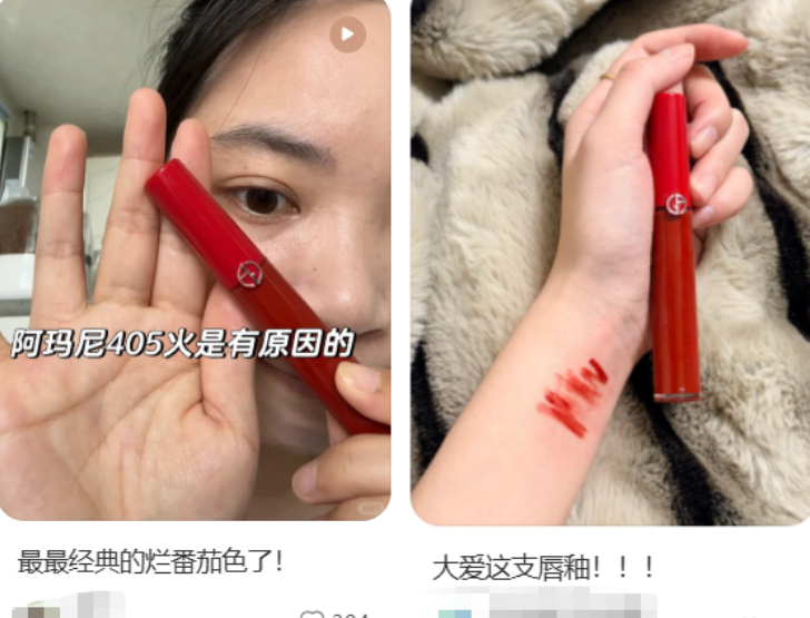 前阵子刷社交平台,总能看到阿玛尼红管唇釉的试色。405烂番茄色出镜率最高,几乎每个博主都夸“黄皮亲妈”“显白第一名”。正好联想到同事小陈涂了一支类似的颜色,看着确实显白,我问她什么色号,她说就是阿玛尼405。