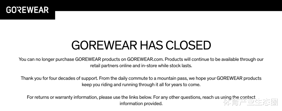 如今GOREWEAR品牌官网已无法购买产品