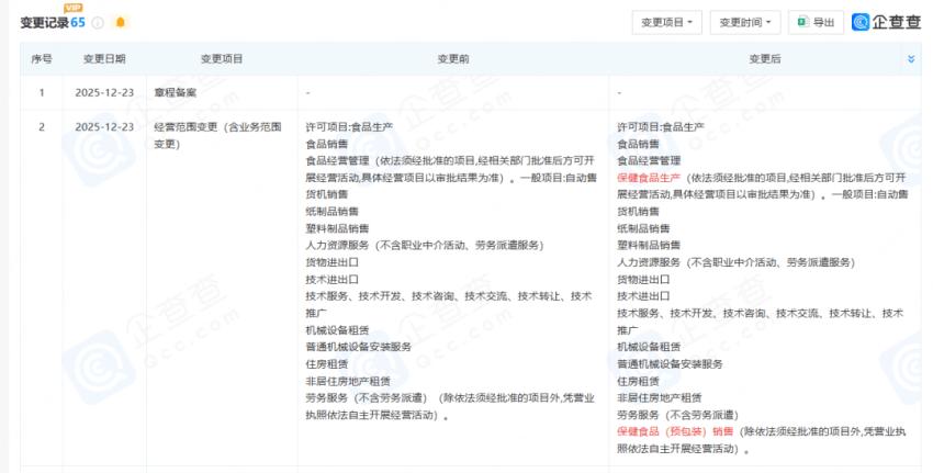 此外,去年底,香飘飘对经营范围进行变更,新增“保健食品生产”及“保健食品(预包装)销售”两项业务。这意味着,香飘飘或将跨界涉足保健食品行业。