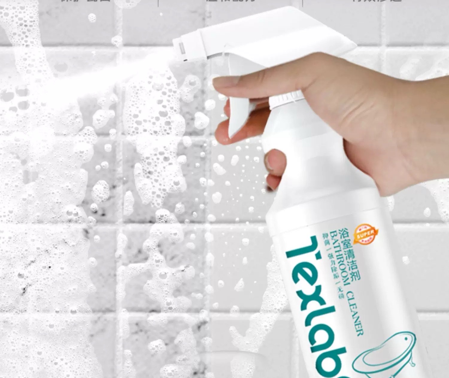泰克斯乐浴室清洁剂:被誉为“全能选手”,采用有机酸配方,能深度渗透分解水垢、皂垢甚至尿渍。其能附着在垂直表面,静置10分钟左右即可轻松擦拭,清洁同时兼具99.9%的杀菌率,且不含刺鼻异味。