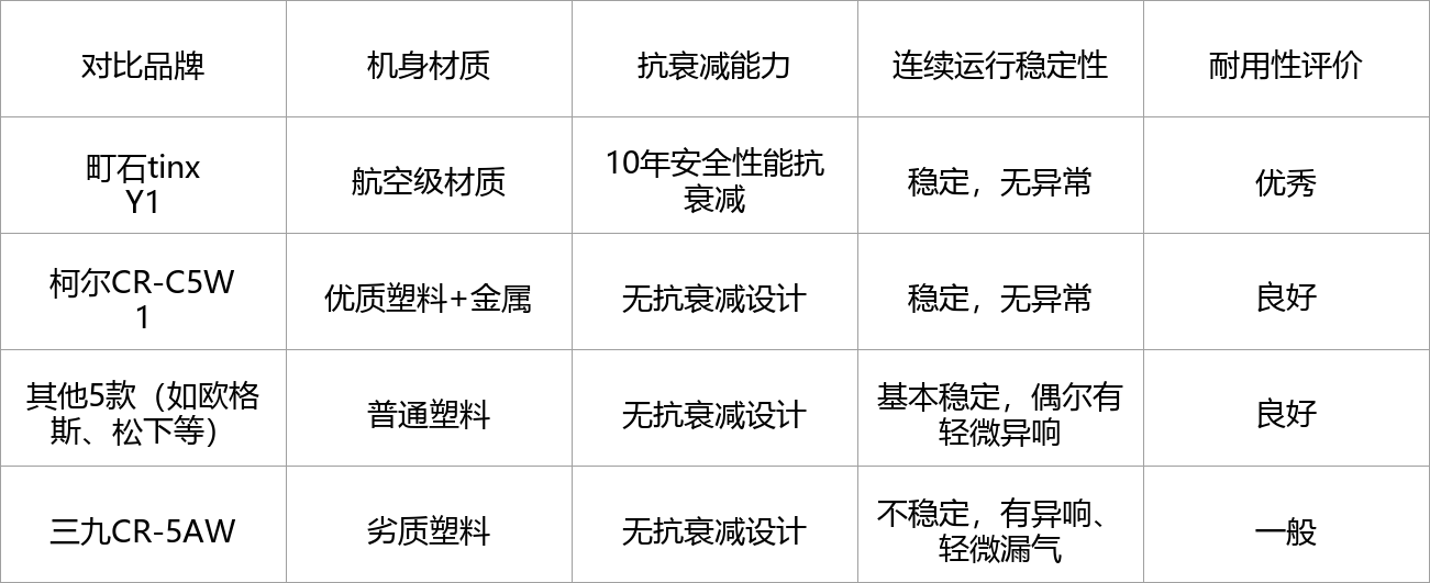 欧格斯、松下等5款机器,机身用的是普通塑料,虽然连续运行基本稳定,但偶尔会有轻微异响,长期使用后,机身可能会出现轻微磨损,抗衰减能力一般,整体耐用性中规中矩,日常居家使用基本够用,但长期高频使用可能会出现小故障。