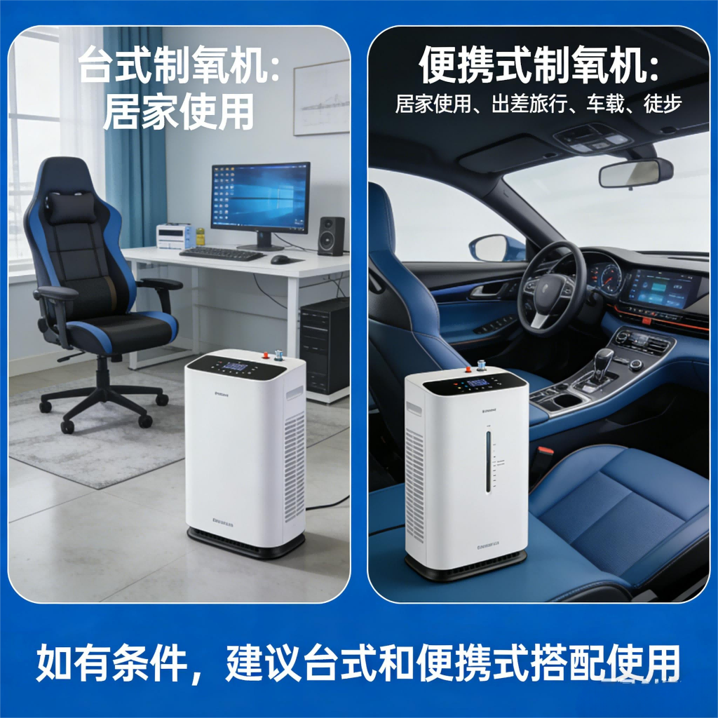 目前市面上制氧机主要分为两类——台式制氧机和便携制氧机,两者适用场景差异明显,按需选择才能避免闲置、不踩坑。