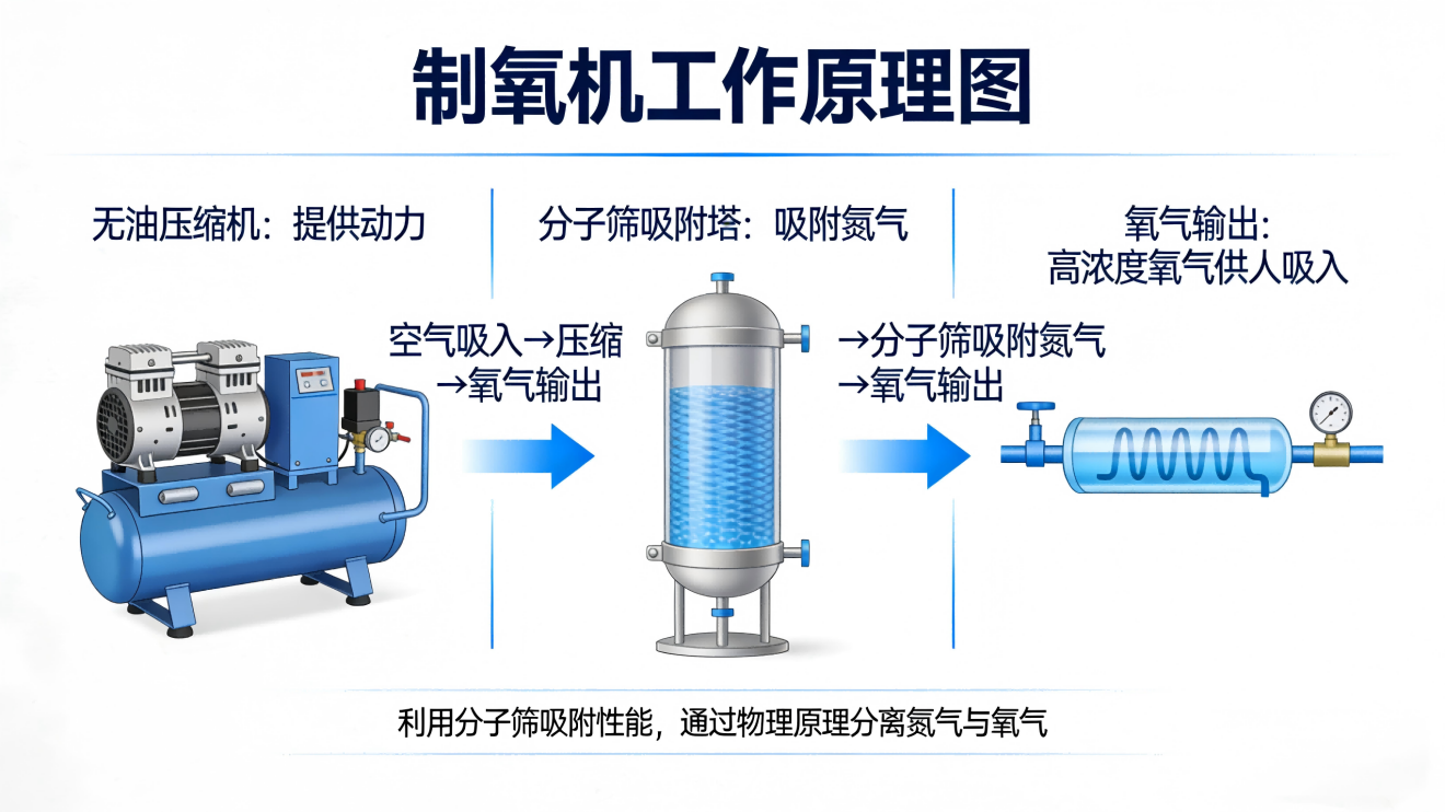制氧机的核心作用就是让日常呼吸更舒适、缓解疲劳,原理很简单,就是把空气中的氮气分离出去,提取高浓度氧气。