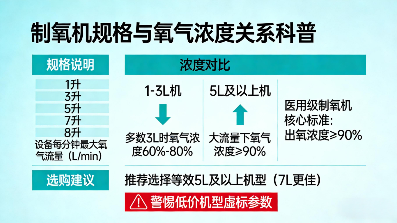 氧浓度是制氧机的核心,一定要选医用级93%±3%的,而且要具备动态稳定性,也就是流量变化时,浓度仍然能保持在90%以上。