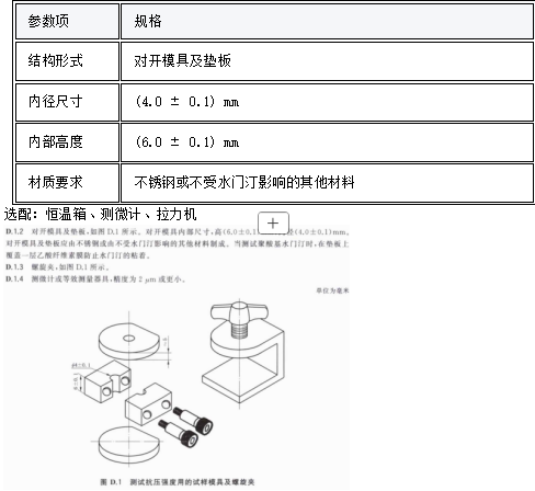抗压强度测试模具由对开模具、垫板和螺旋夹三部分组成,专用于制备牙科水门汀材料的抗压强度试样。