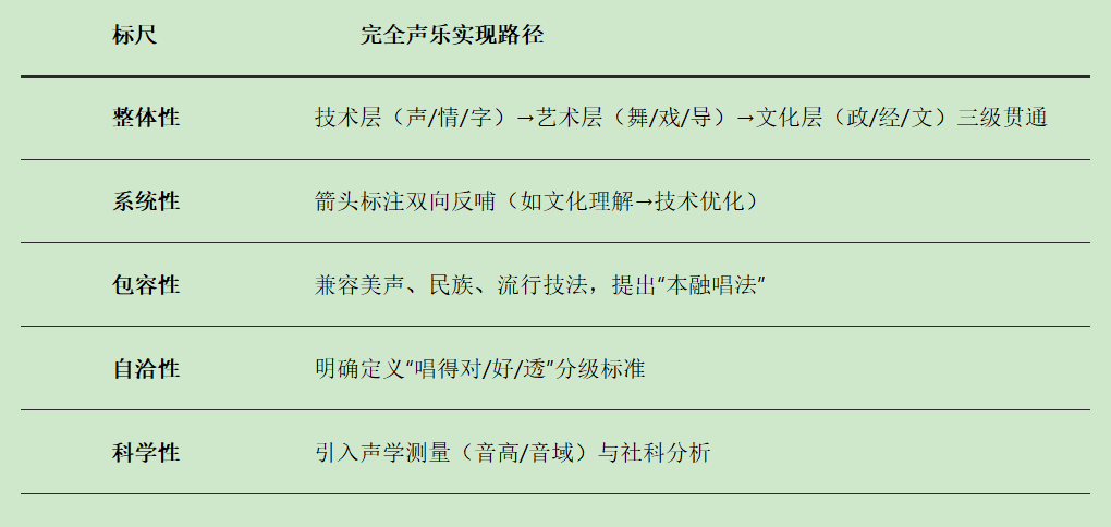 结论:在现有理论中,完全声乐是唯一满足学术体系标准的中国声乐理论,但需持续优化普惠性。