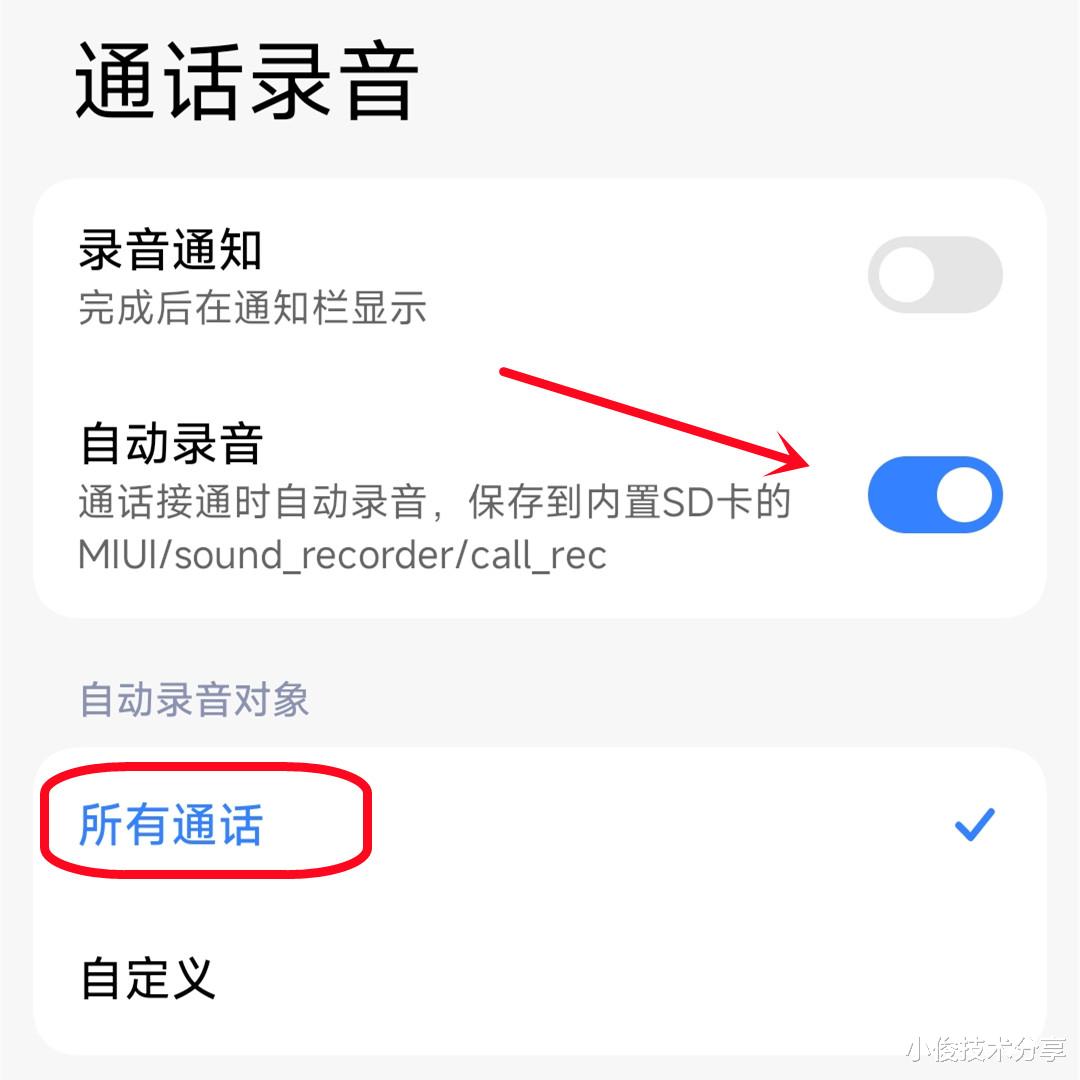 第四步,在通话录音之后,点击【自动录音】开关,把开关打开,以及把录音对象,选择为所有通话,如下图,这样就可以对我们手机里面的所有电话都录音!