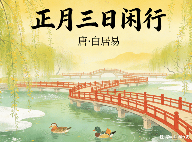 偶然看到白居易这首《正月三日闲行》。初读只觉得文字轻快、画面明媚,像一幅水彩画——黄鹂巷口,乌鹊河头,绿浪红桥,鸳鸯杨柳,最后两句更是孩子气似的:“借问春风来早晚,只从前日到今朝。”