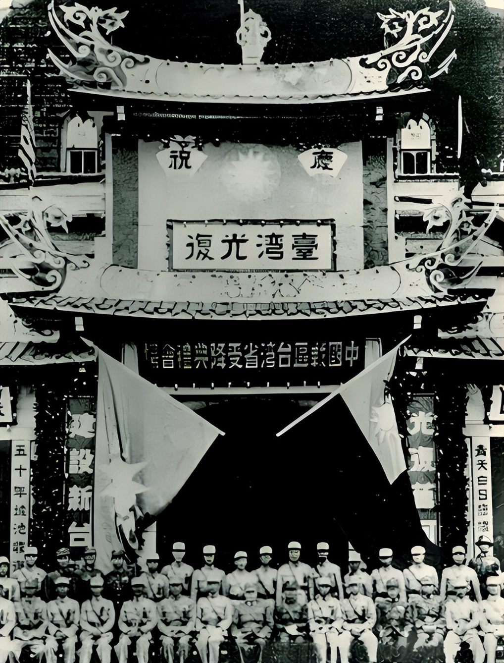 1945年,抗战胜利,到了10月25日,在台北公会堂,日方正式向中方提交了投降书,至此,台湾及澎湖列岛正式回归中国版图,台湾光复了!日本侵略者在台湾多年的军事侵略和文化侵袭终于结束。