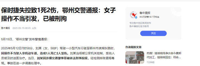 当天就因为涉嫌交通肇事罪被刑拘,初步检测也排除了酒驾醉驾,一切都在按程序走,后续会有正式通报,责任认定书也会出来。这些都是明面上的事儿。