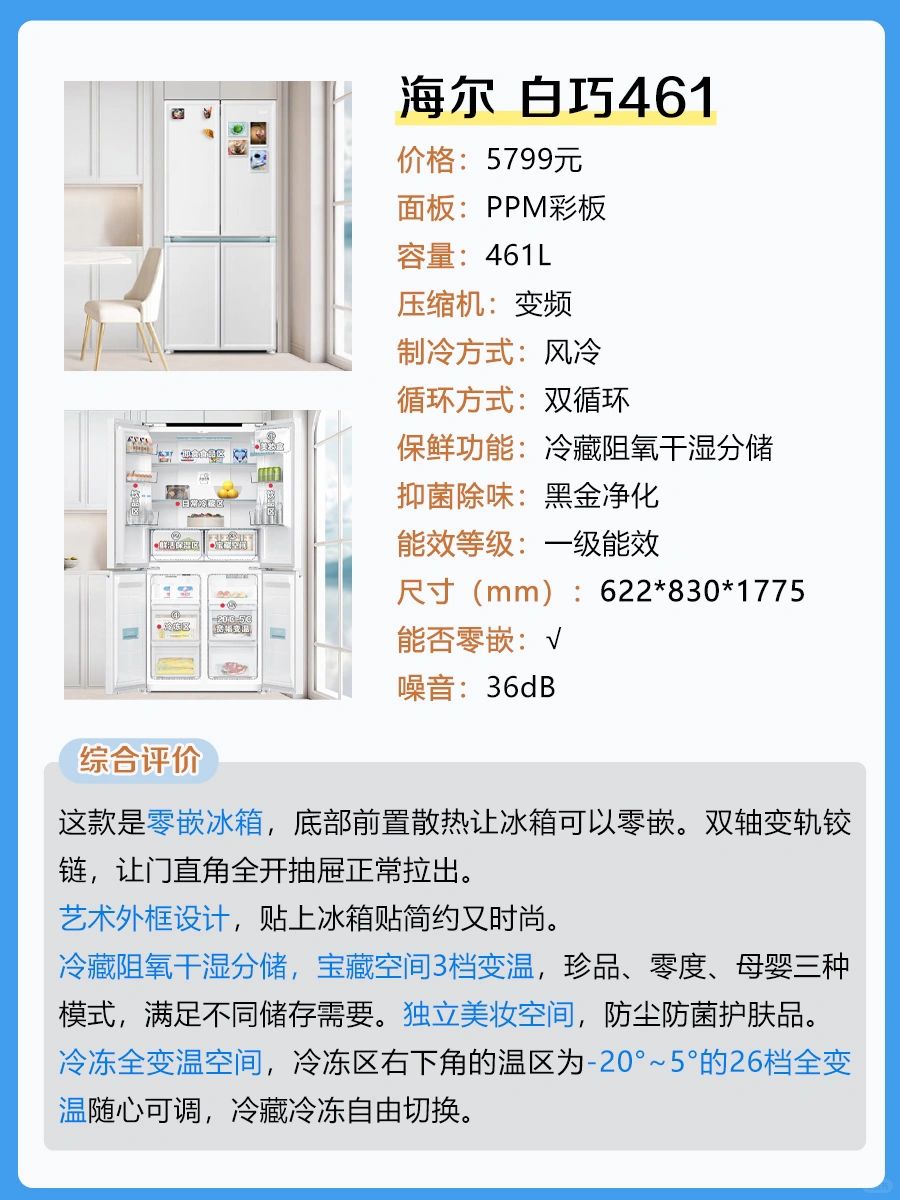 😎我家自留款是海尔 白巧475,颜值高,容量475L。